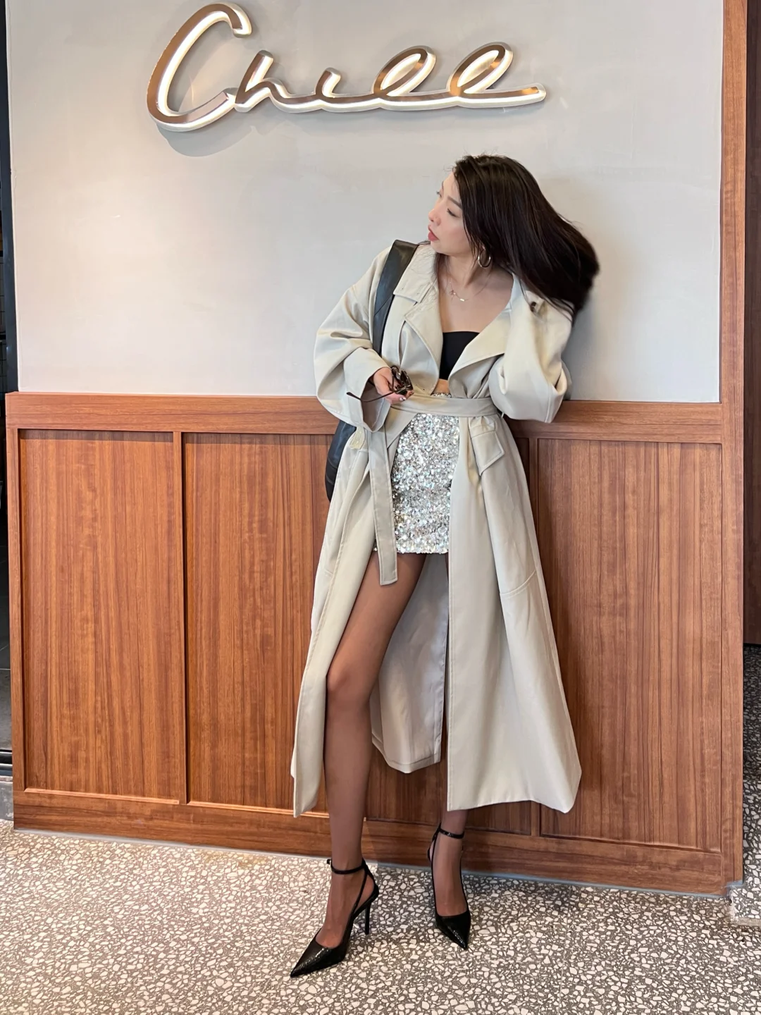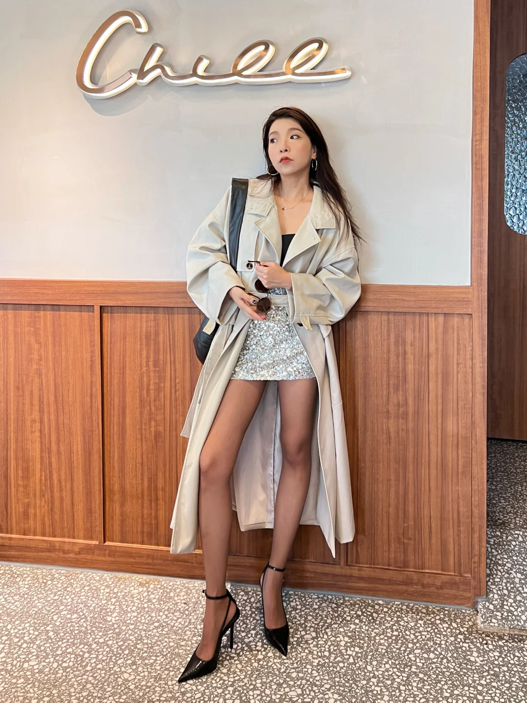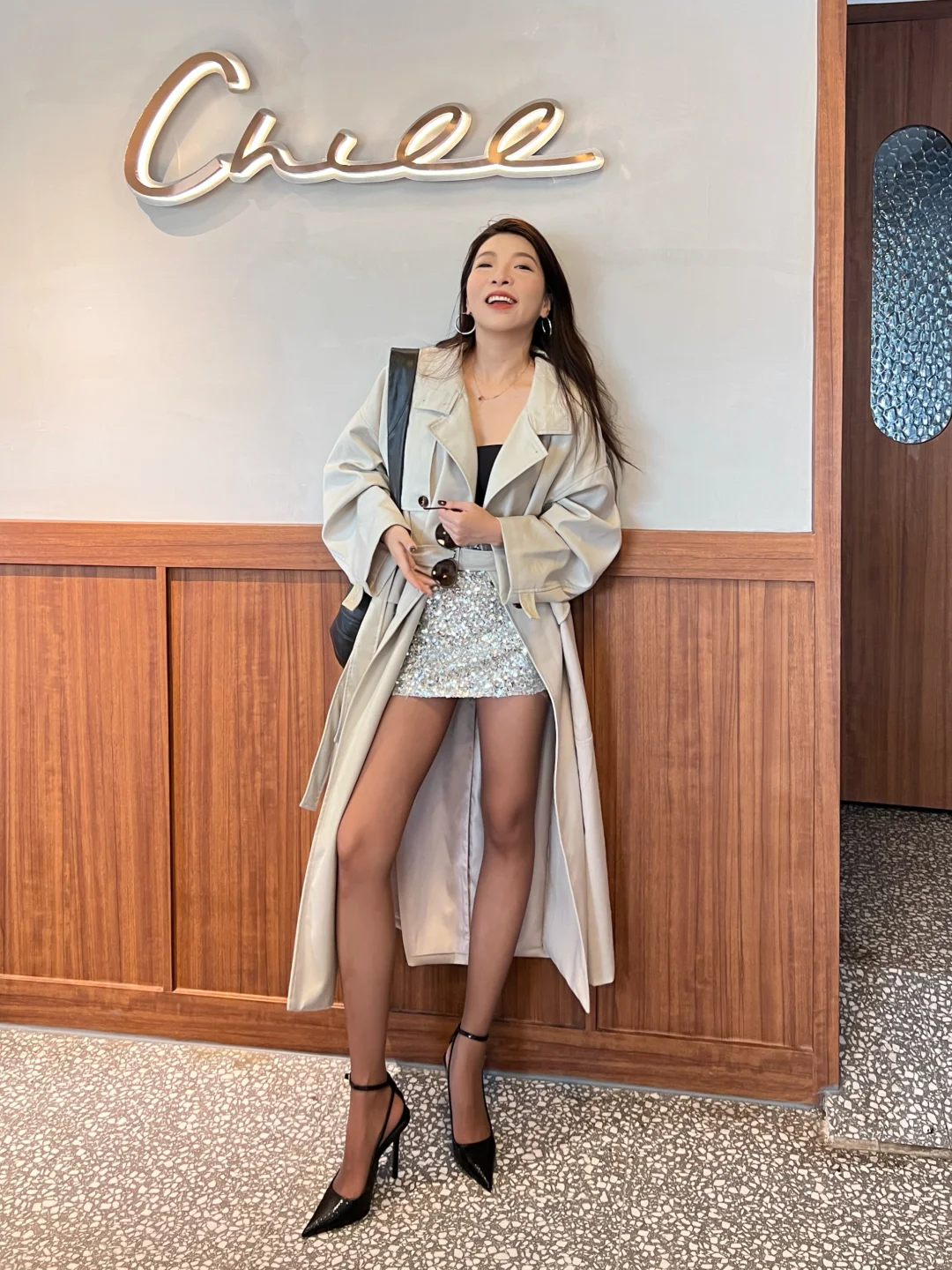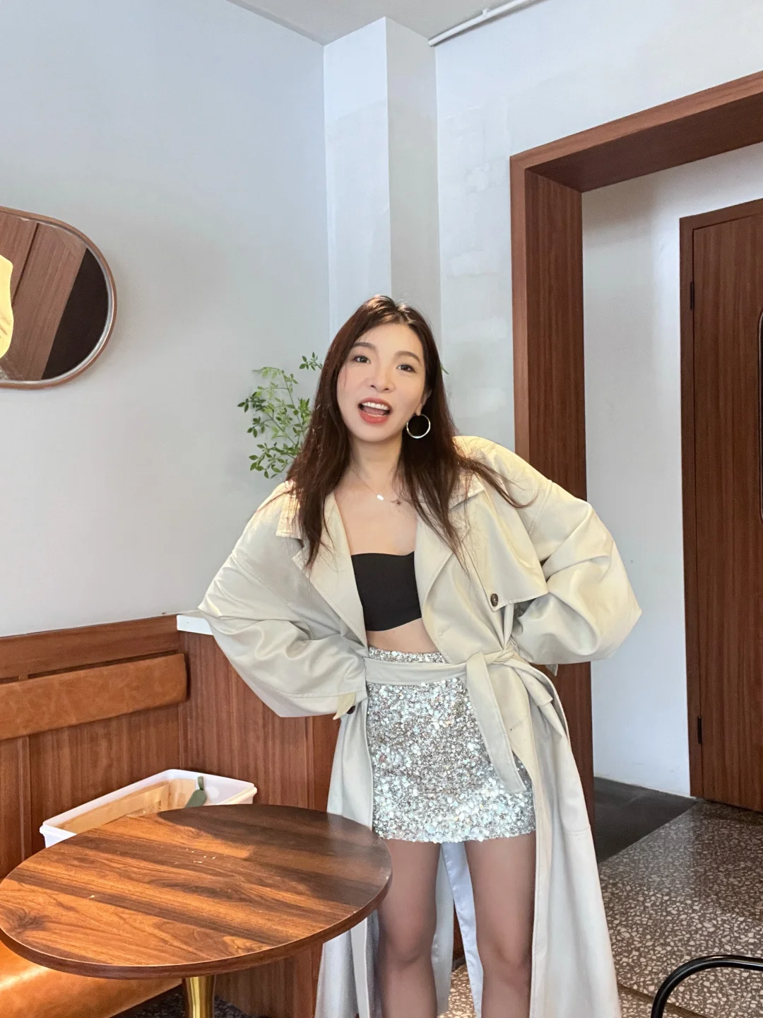 早秋实用主义穿搭,少不了风衣🧥 低饱和色系米色风衣🧥搭配亮片裙,酷飒的姐姐风! 搭配裤子👖还是裙子风衣都很好驾驭!