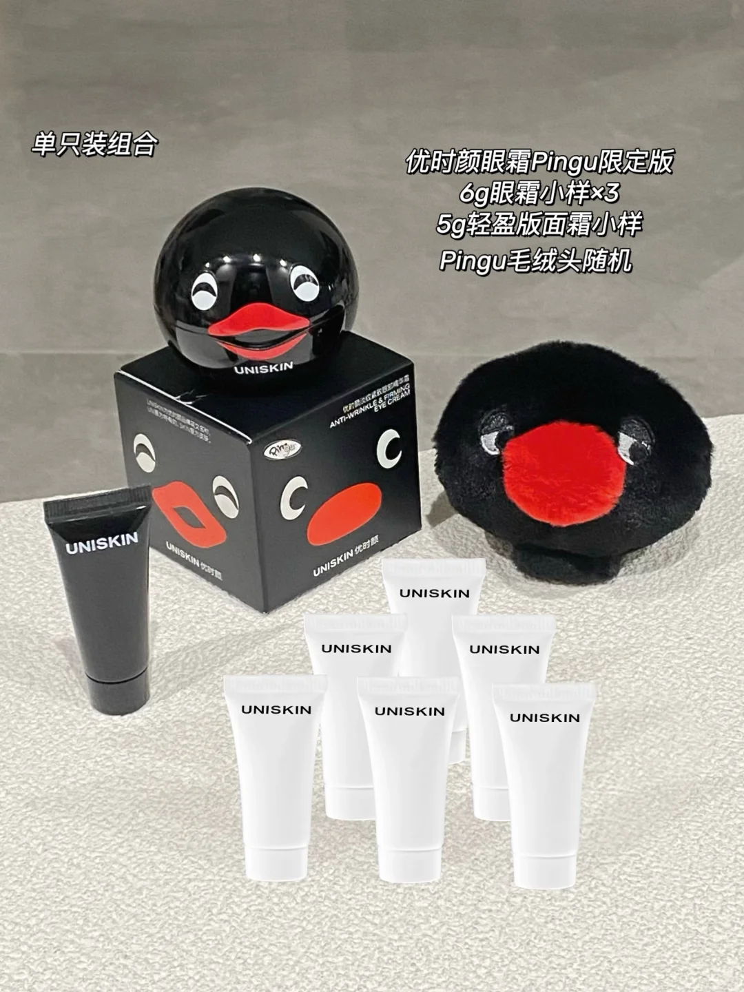 送正装等量眼霜(3*6g)+1个5g面霜轻盈版+1个pingu毛绒饰品(随机) 到手6件!