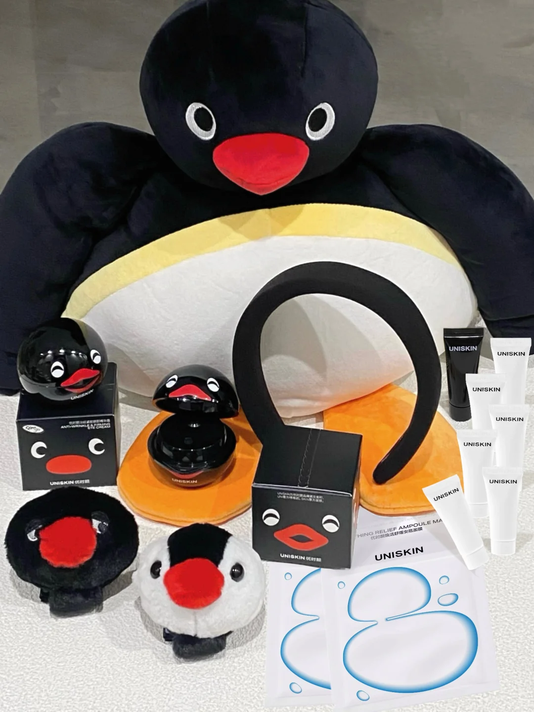 送2个正装等量(6*6g)+2片小蓝弹面膜+2个Pingu毛绒饰品(款式各1)+1个发箍 到手整整12件!