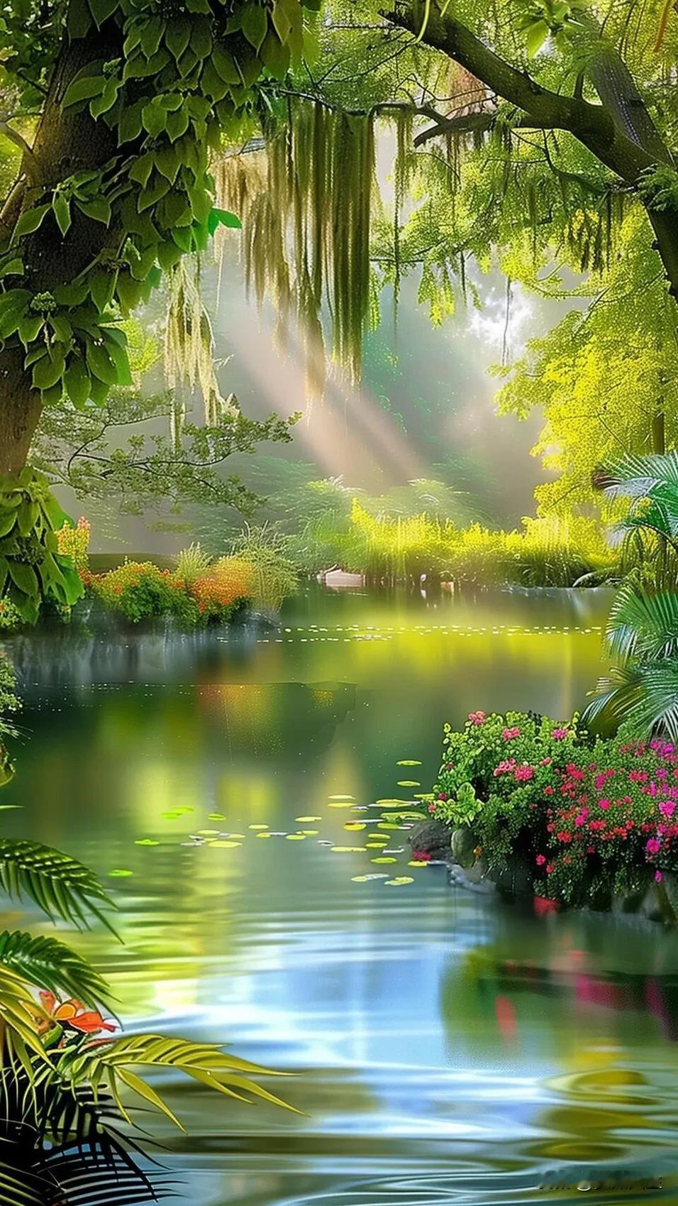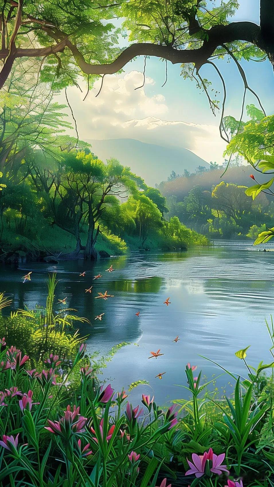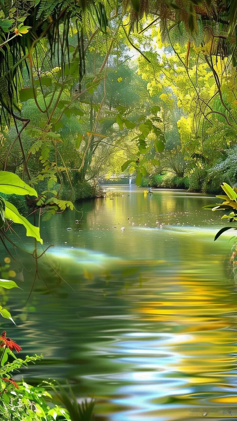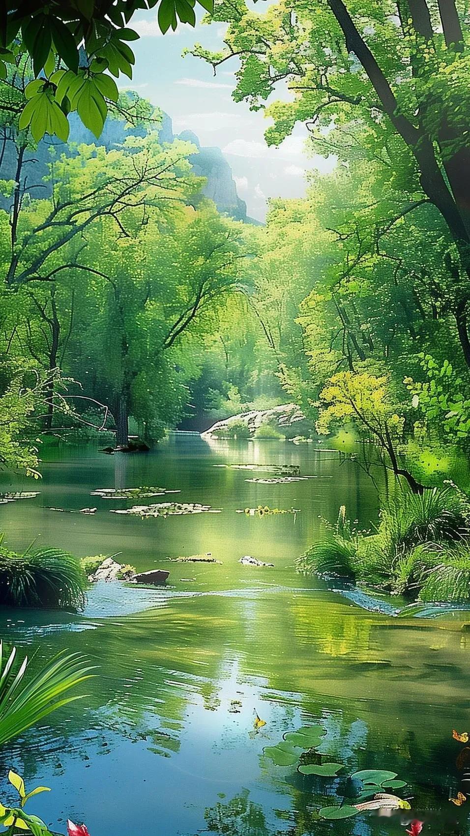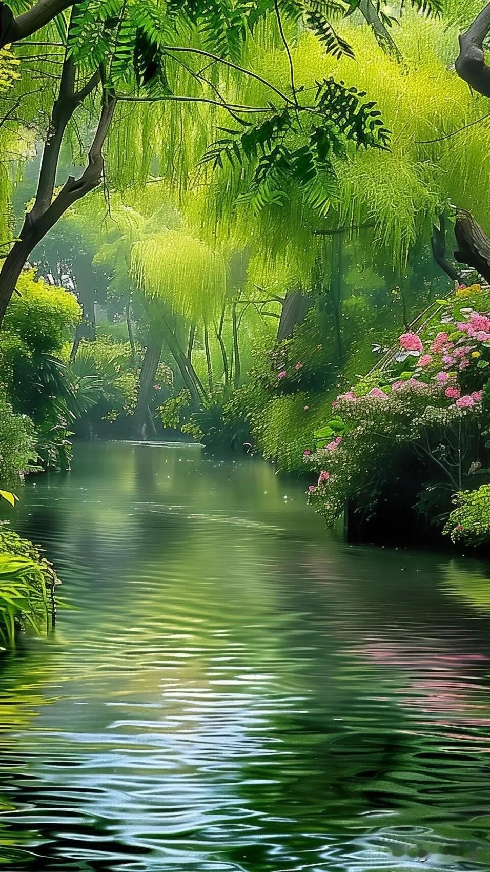 绿水悠悠绕林间,碧波荡漾映碧空。#诗情画意景色# #美景图片分亨# #景色如画如仙境# #诗意美景分享# #赏两岸风景# #美丽山风景。# #看绿叶随风摇曳#