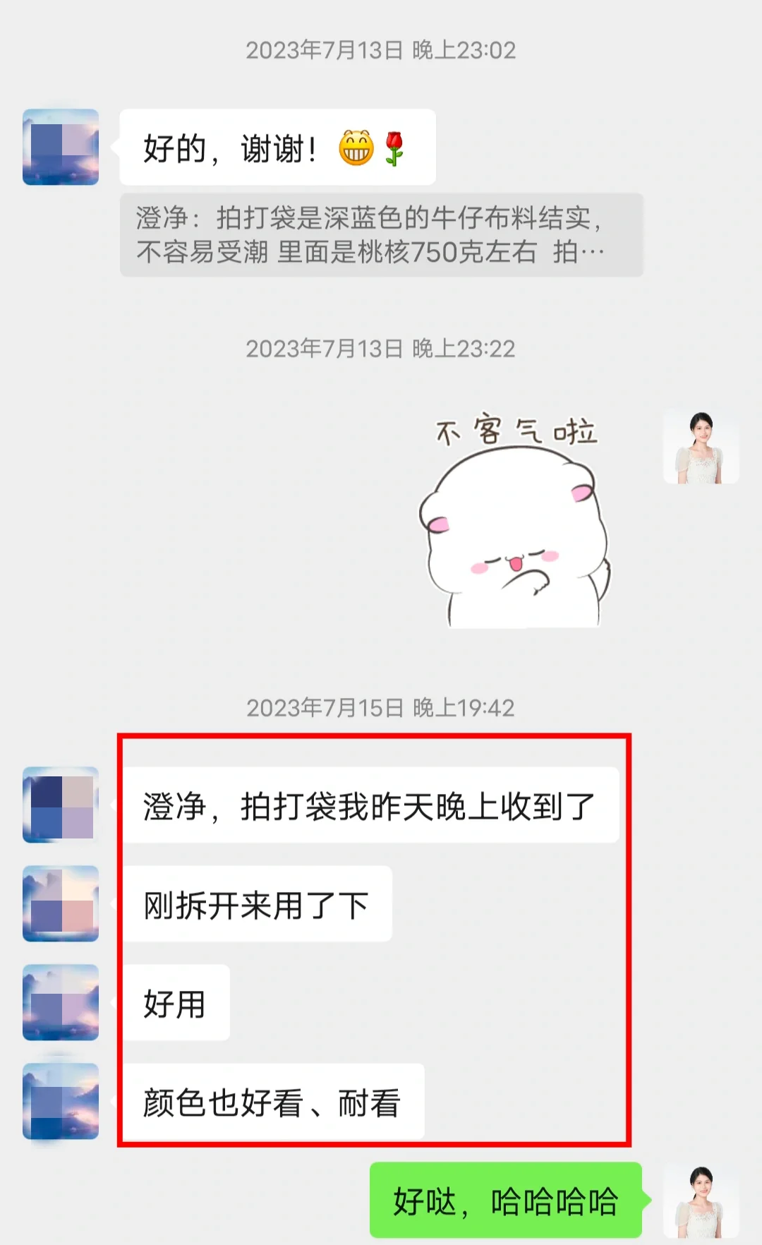 拍打袋的布料牛仔很结实不易受潮,可以使用很久,请阿姨在服装厂帮做的。我卖拍打袋以来,基本很少很少有退款的(好像没有),只有两个退换货的。