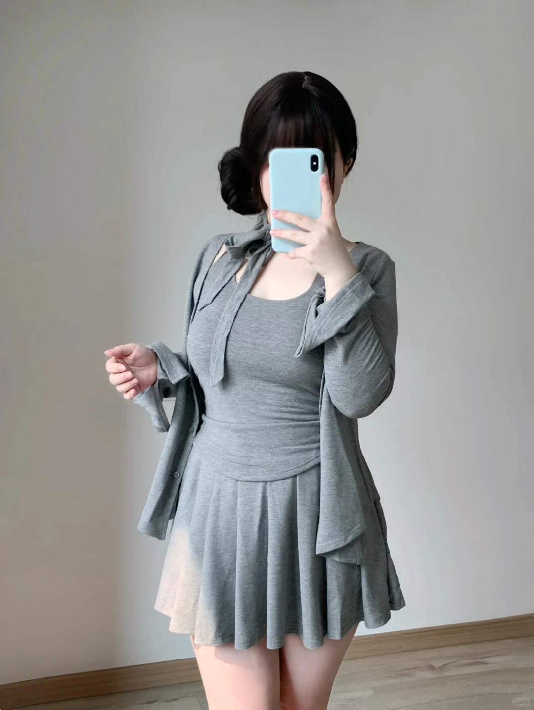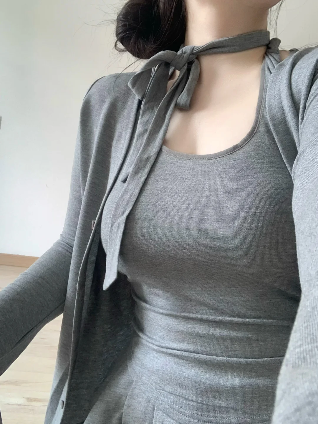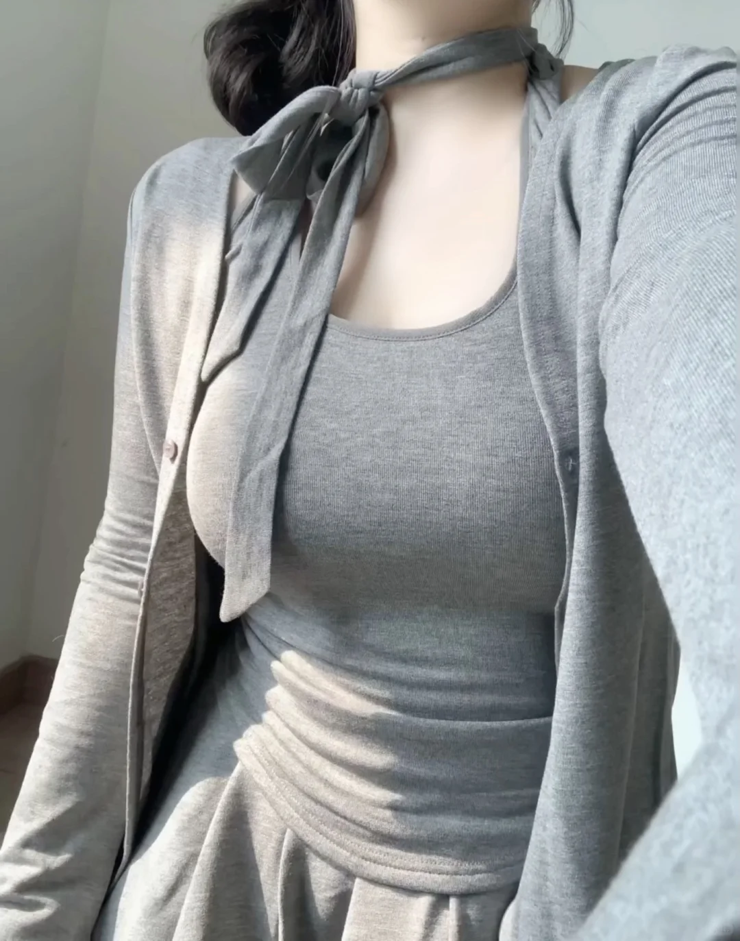 今年N个漂亮时刻 温柔穿搭 显瘦穿搭 微胖穿搭 小个子穿搭 挂脖上衣 早秋穿搭 灰色系穿搭 灰色套装