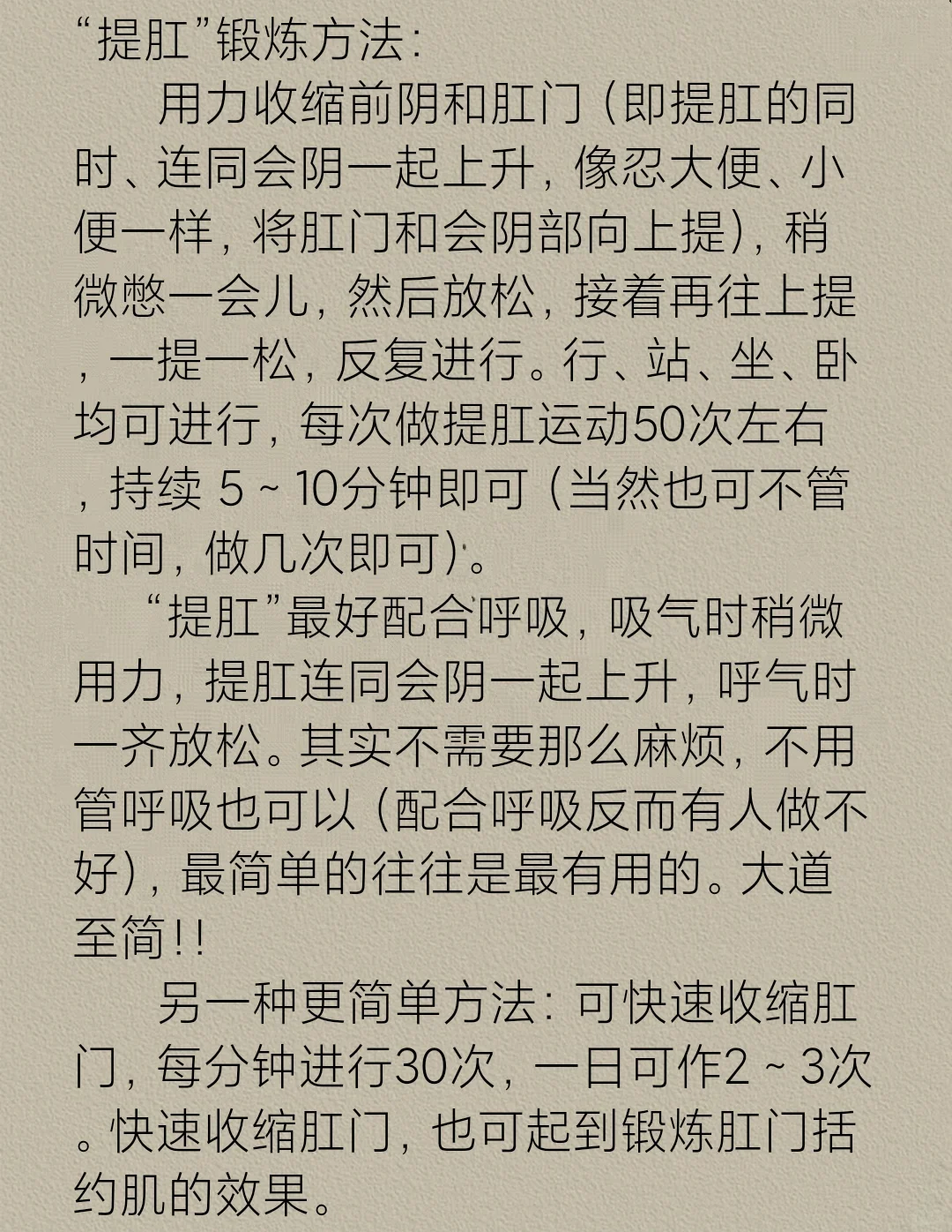 坚持做“提肛”强壮括约肌,补肺气、肾气