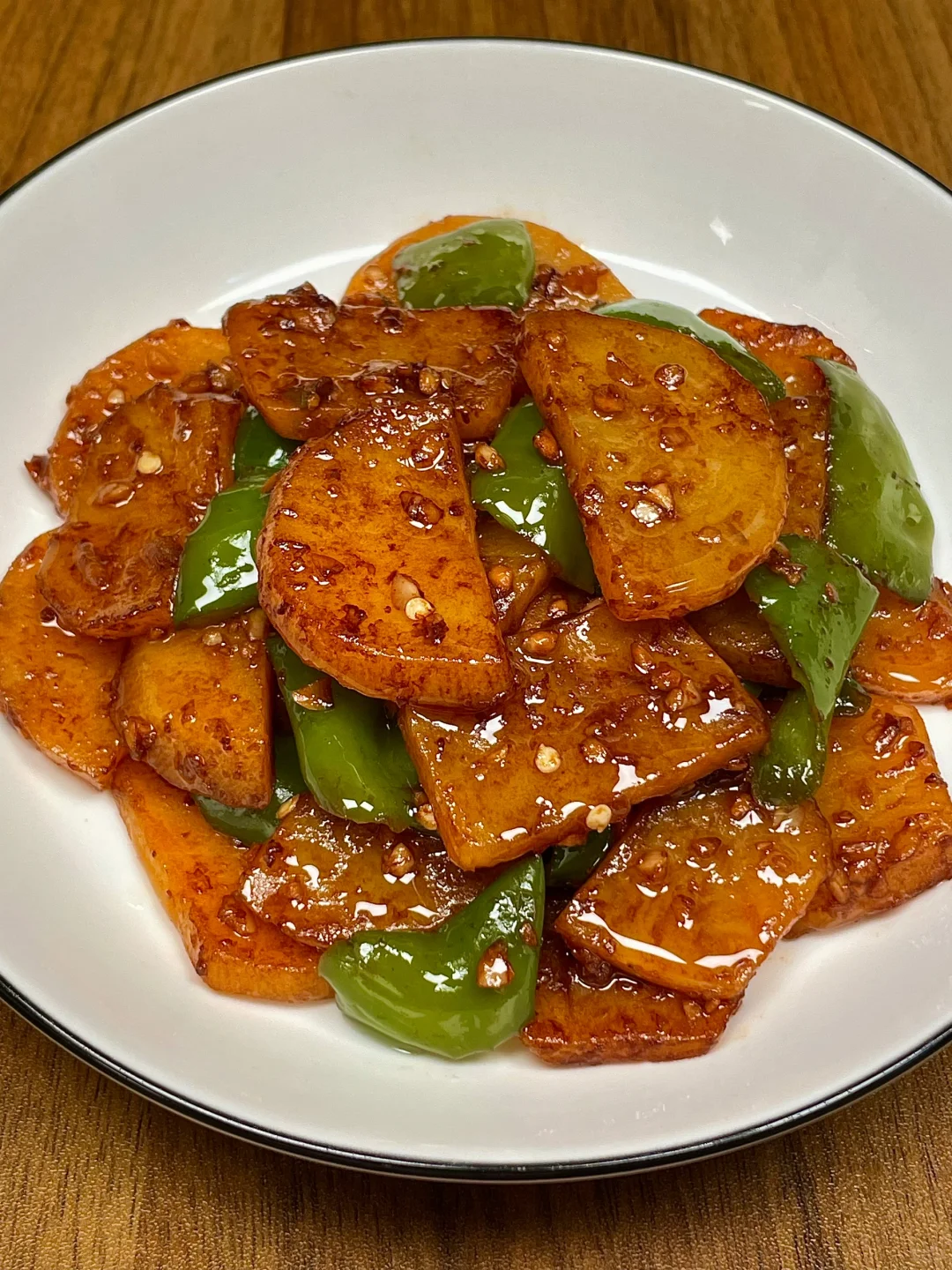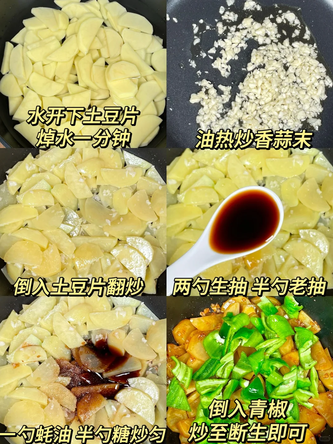 青椒土豆片!一上桌就炫不停[色色R]巨香巨好吃! 蒜香浓郁,鲜香入味,配米饭嘎嘎绝!好下饭呀!做法简单,姐妹们一定要试试!! [向右R]食材:土豆➕青椒➕蒜末 [向右R]做法:如图所示!