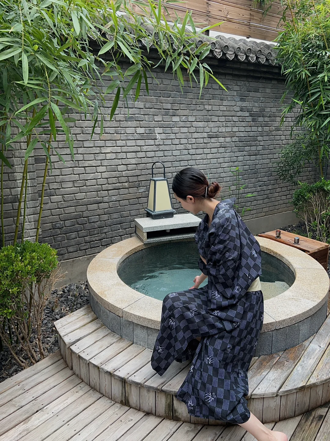 温泉还能穿浴衣拍照?北京这温泉是时尚秀场吗?泡着热水,摆着pose,这体验有点新奇哦~