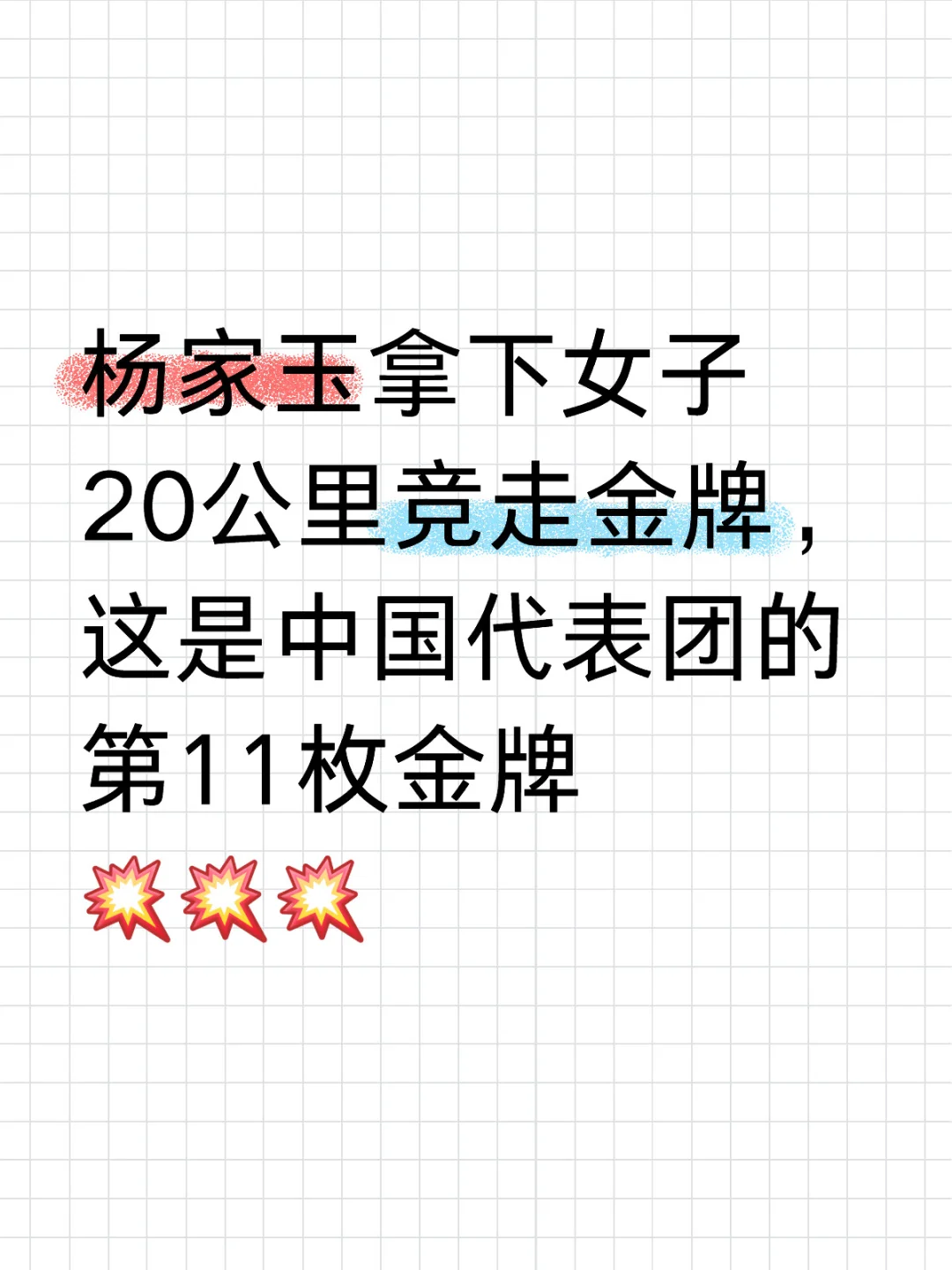 杨家玉拿下女子20公里竞走金牌,这是中国代表团的第11枚金牌[爆炸R][爆炸R][爆炸R] 这是中国田径代表队的第一枚金牌,为田径代表队开了一个好头。