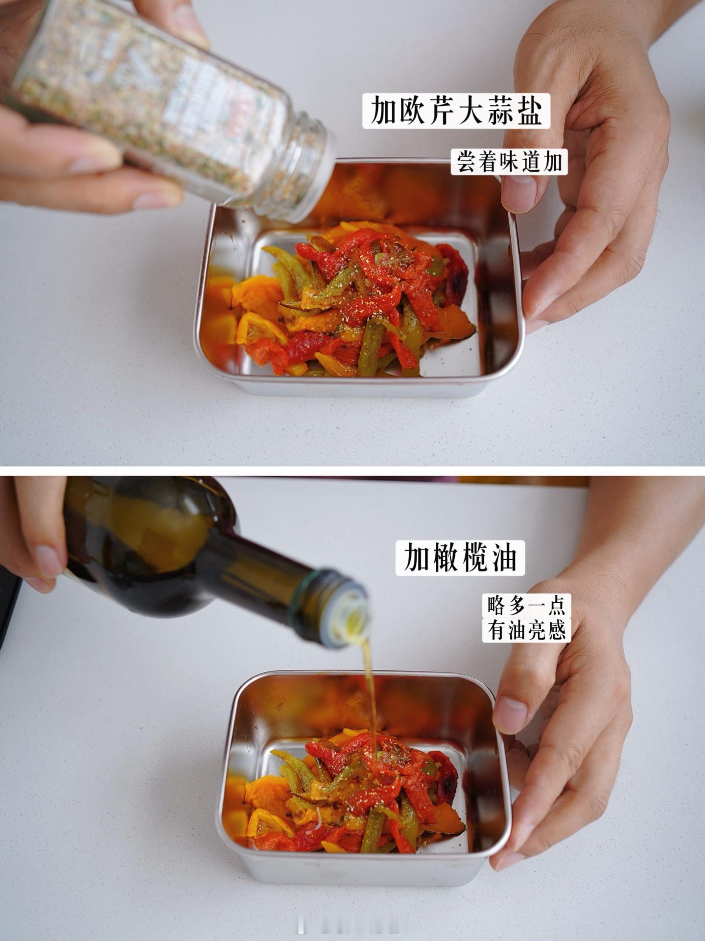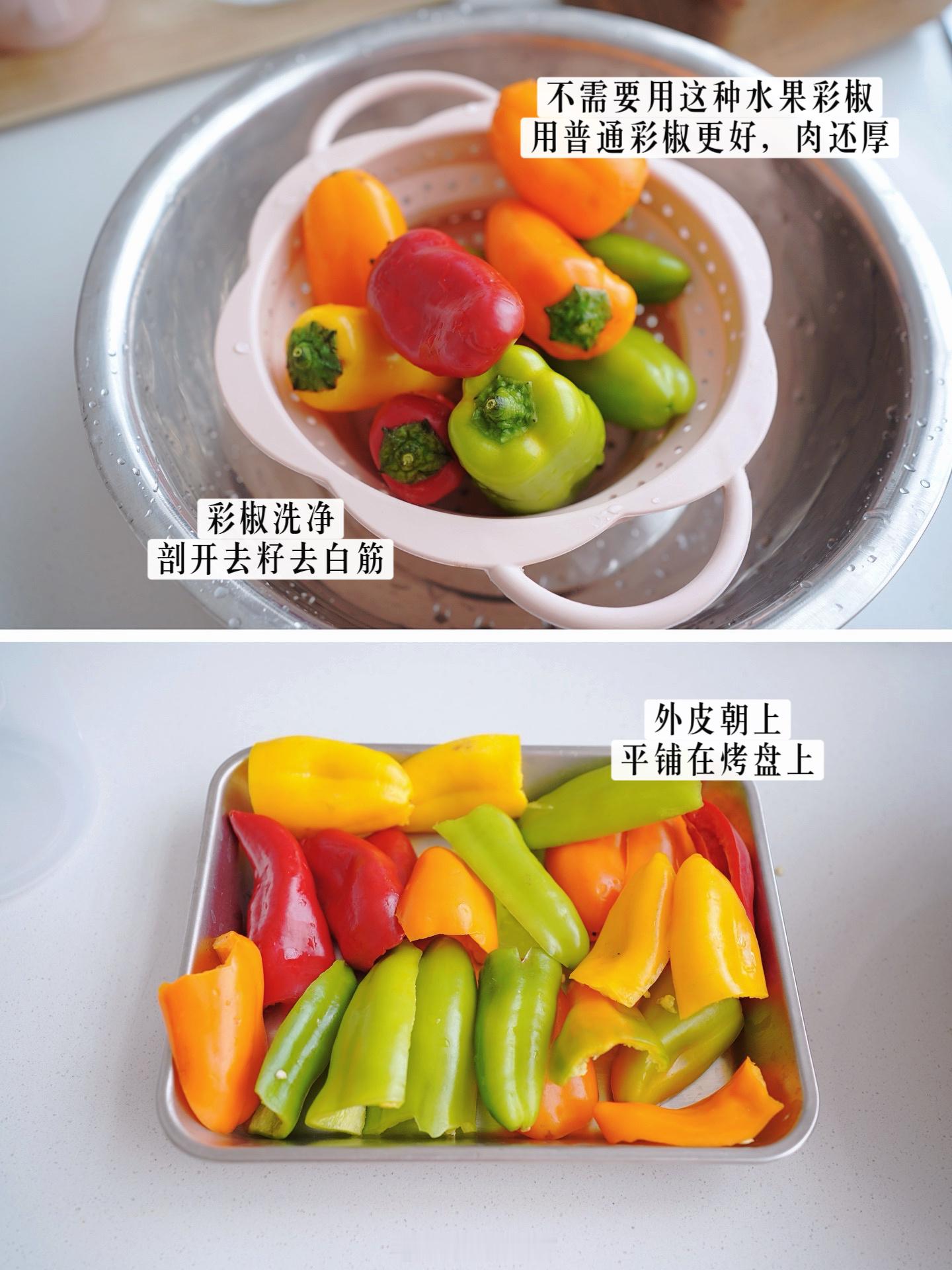 尤其这个烤彩椒,普通彩椒效果要更好,因为肉更厚呀!