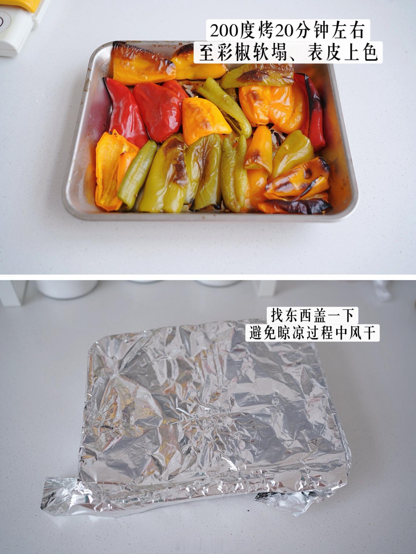 之前我们都试过烤小番茄,对吧?做开饭三明治、拌面等,也是很神器了!那么,如果你有彩椒,强烈建议试试这个烤彩椒,一片吐司根本吃不够,我吃完又补了一片吐司,好好吃~