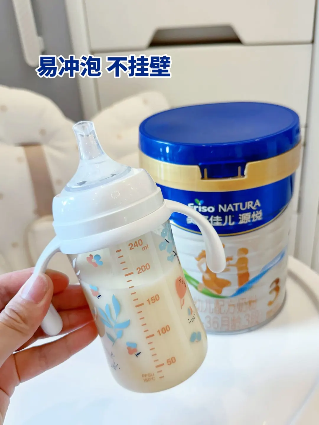 粉质细腻蓬松,新手爸妈冲泡起来也是毫无压力,不会结块儿、不会挂壁!泡好的奶液口感清淡还有自然奶香味😋果粒每次都是吨吨吨一会儿就喝完了~