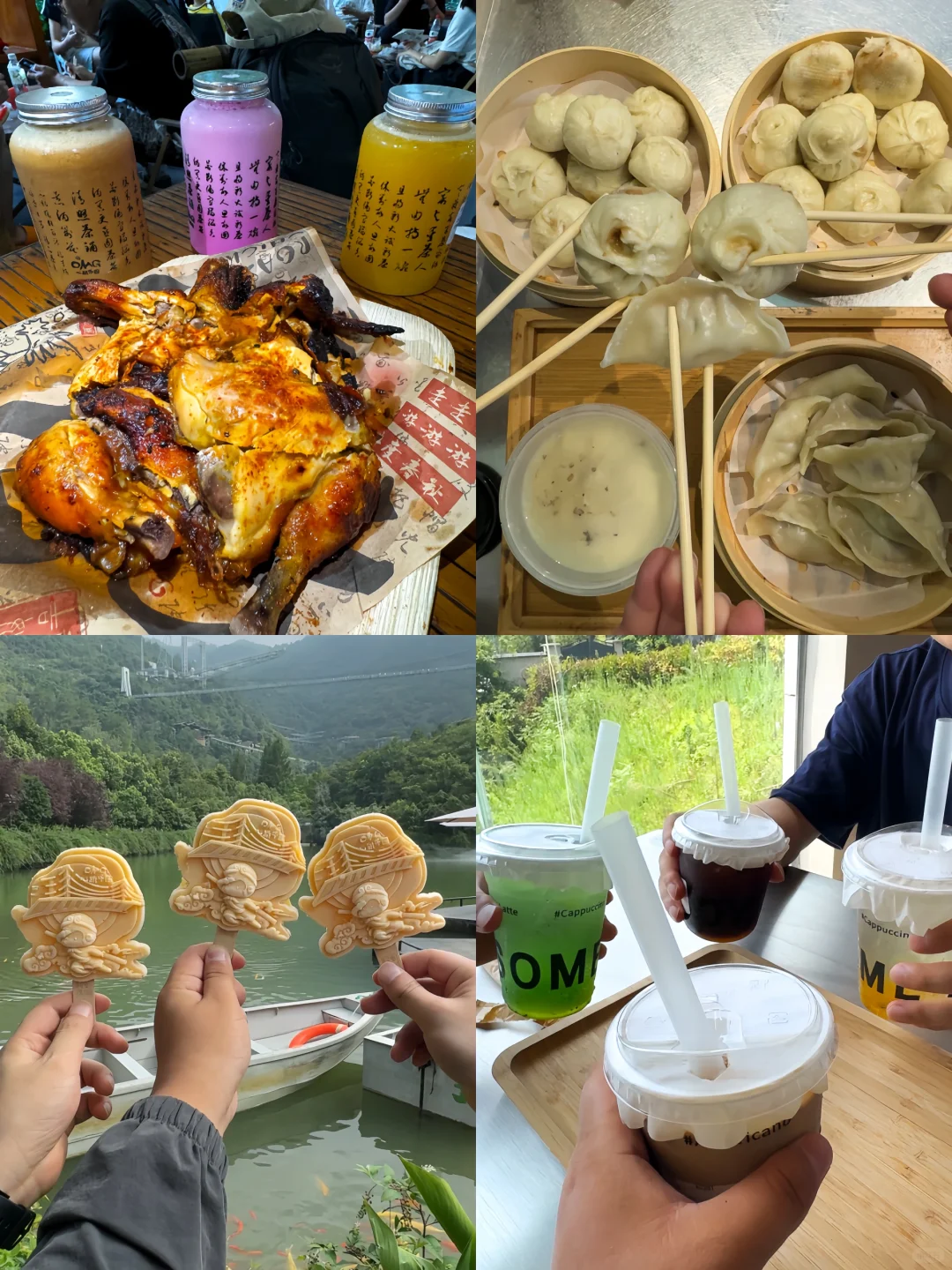 1️⃣0️⃣漂流出来可以品尝烤鸡和鲜榨果汁,还可以捕鱼,铲沙,喂鱼,喊泉等,都很适合小朋友🧒