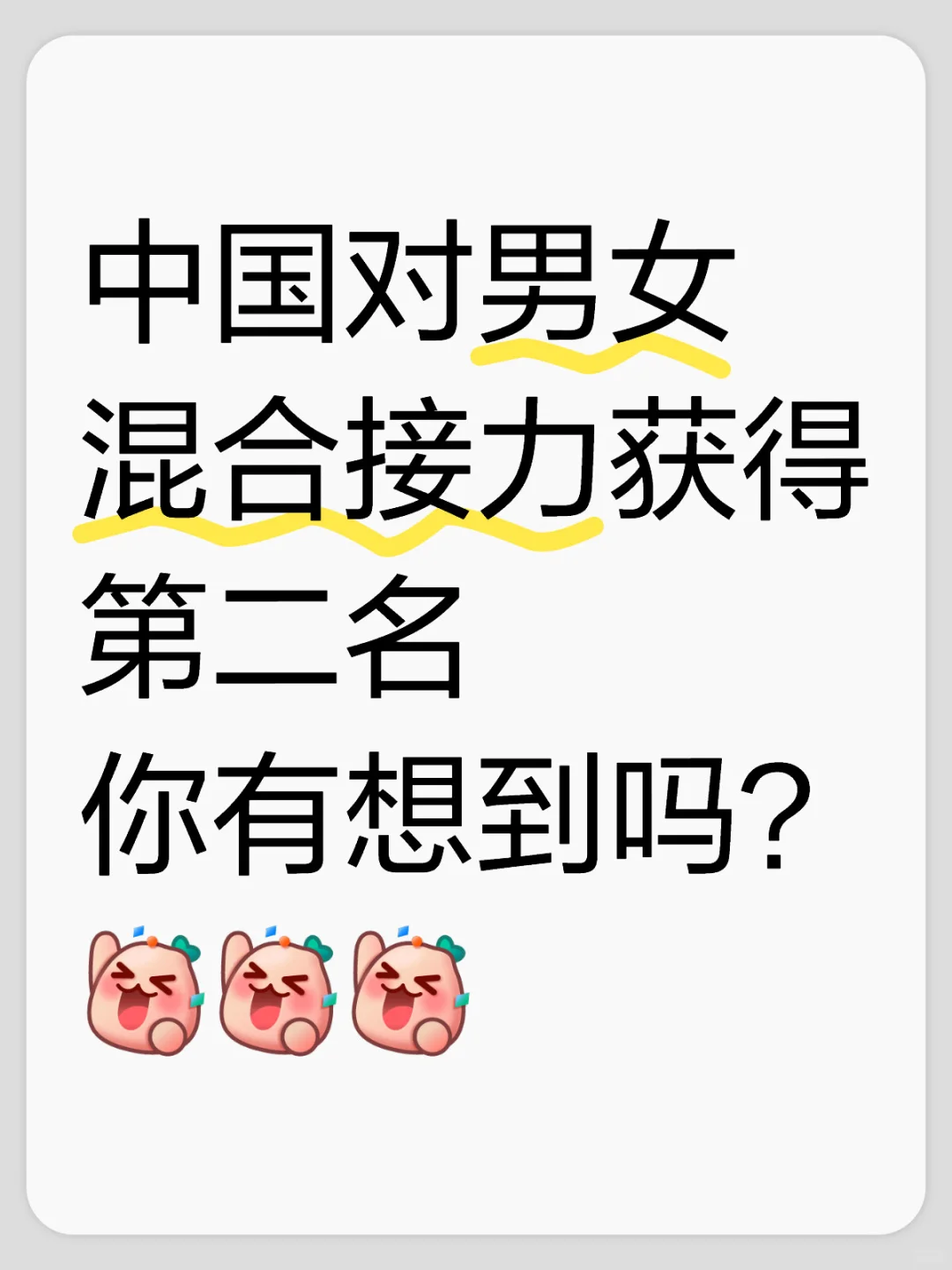 中国队男女混合接力获得第二名