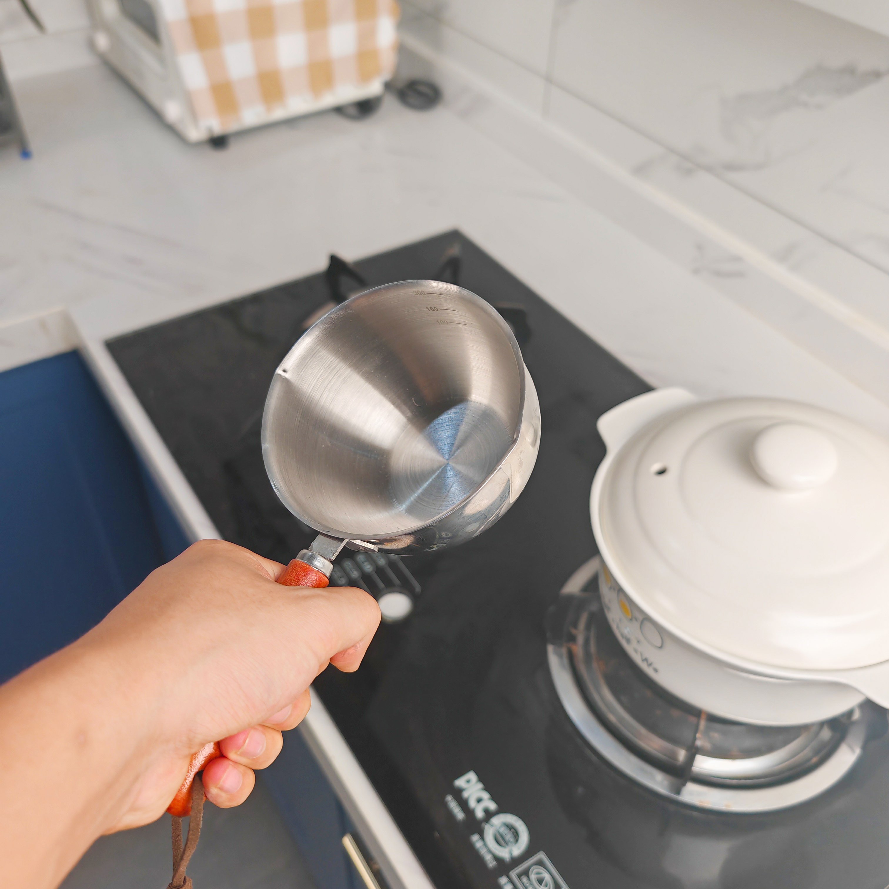快来试试这一款佳帮手泼油小锅,双侧导流口,泼油更方便,304食品级不锈钢,守护家人健康,防烫榉木手柄,不怕滚烫,赠送皮革绳,解决收纳难题,快来试试吧