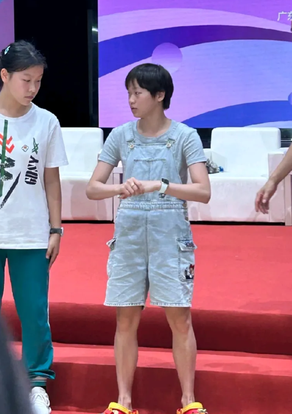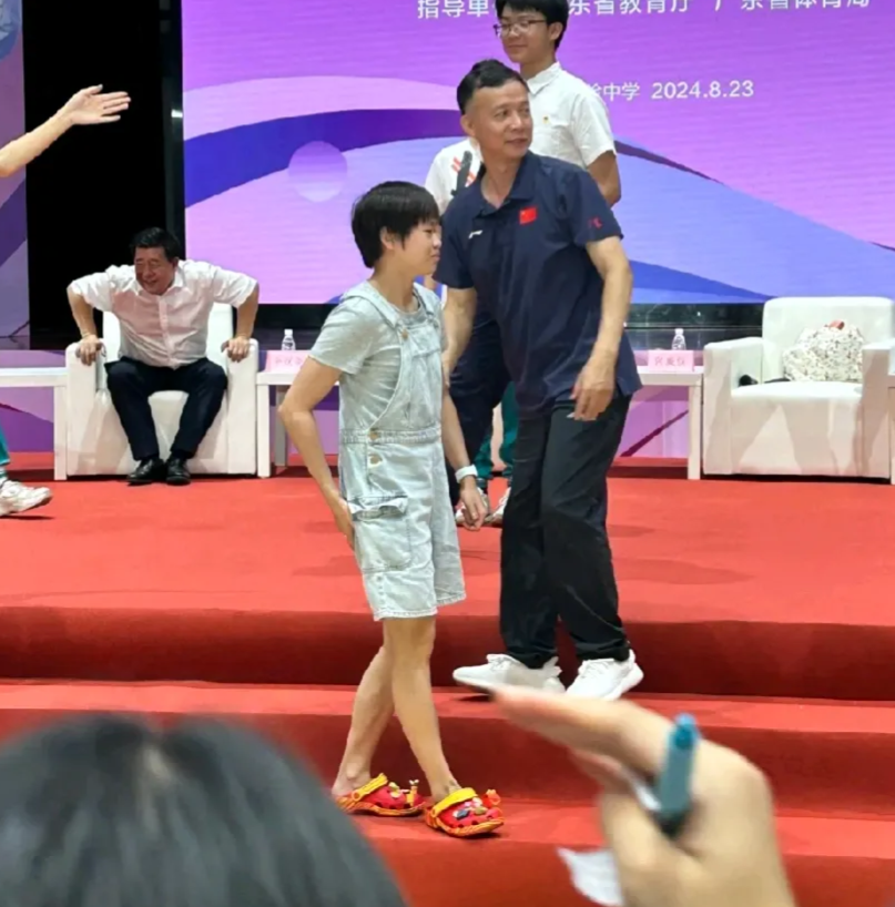 全红婵现身广东实验中学参加活动,穿着她的小红拖鞋和背带裤就来了,好松弛啊! 笑死