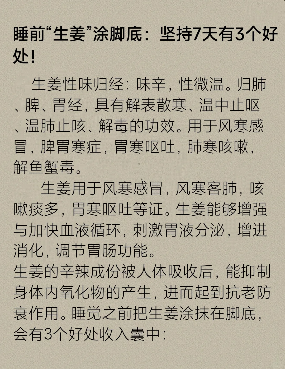 夏天养生睡前涂“生姜”坚持7天有3个好……