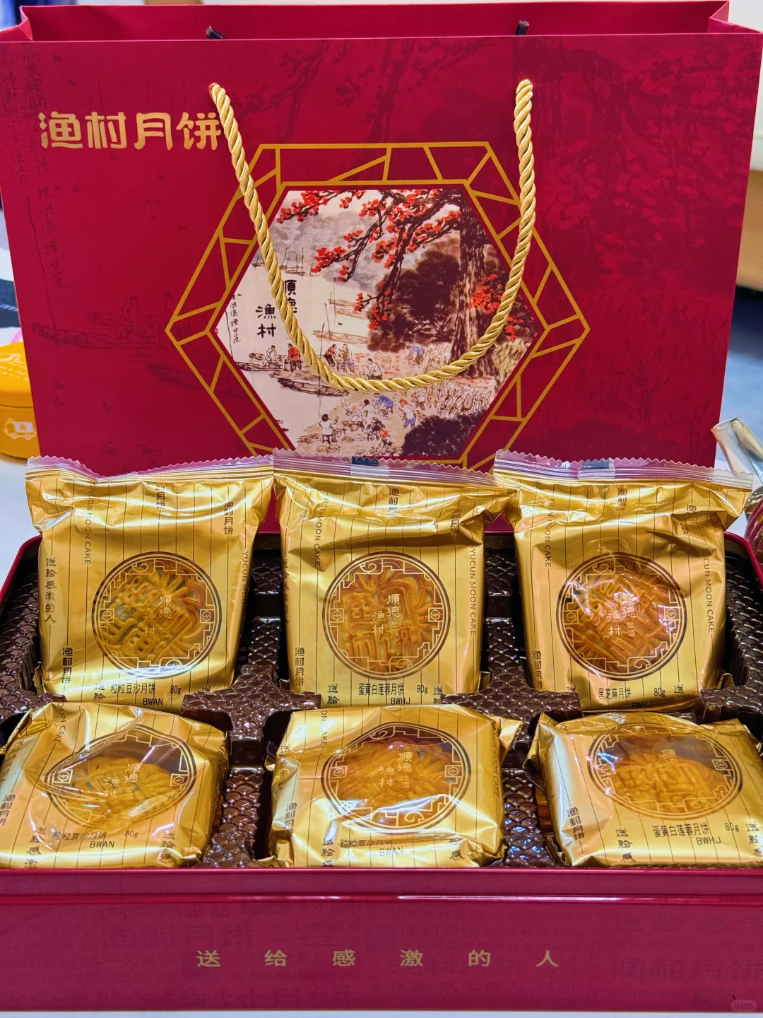 以前小时候吃的月饼白莲蓉口感细腻 里面的鸭蛋黄口感流沙 可是现在越来越难吃到这个味道🥲 今天在man姐的介绍下 终于吃回这个味道啦‼️ 而且还有更多特色的味道哦~ 我买的这盒其中蛋黄姜汁莲蓉味太喜欢了~ 灵感来自于顺德姜撞奶 云南的小黄姜🫚➕湘潭莲子 味道不会太甜~不会腻 还有流沙的鸭蛋黄~ 另外的粒粒红豆和黑芝麻味月饼🥮 长辈们的蕞爱❤️ 顺德渔村用料一直都是蕞好的 而且每种礼盒的包装都好别具心裁 满满的岭南特色 好适合送礼🎁
