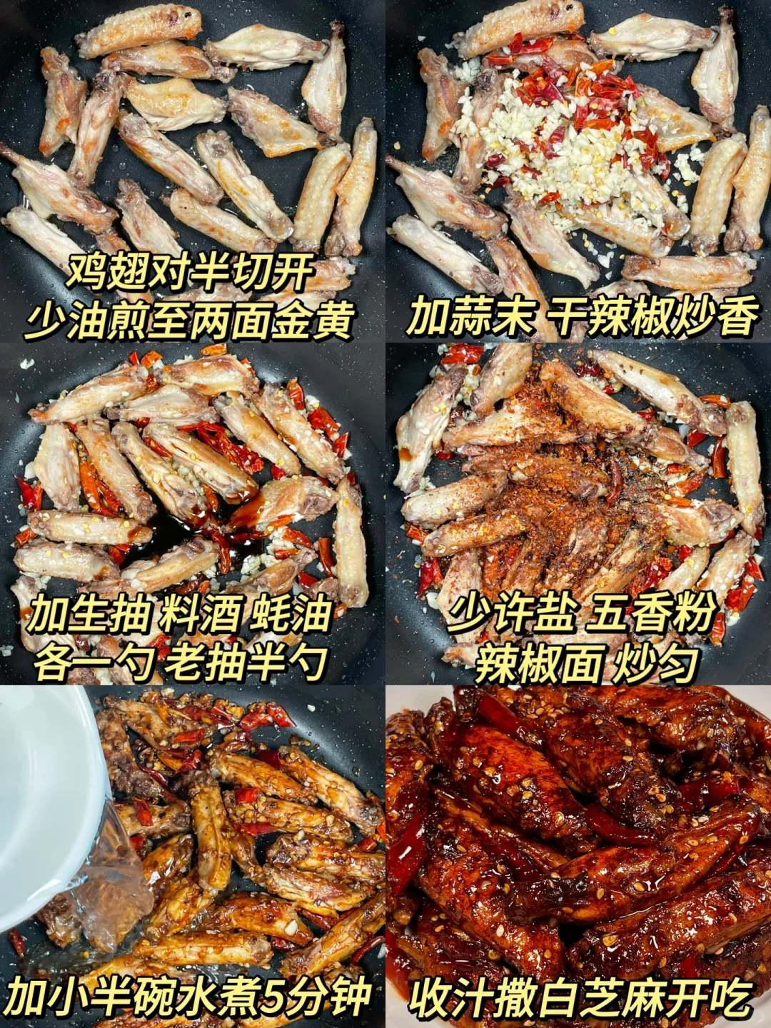 这道香辣鸡翅一出锅就香迷糊,好好吃哇[色色R] 鸡翅香辣过瘾,鲜嫩多汁,好吃到停不下来[哭惹R] 做法简单,求你们去做!不好吃算我输!! [向右R]食材:鸡翅 [向右R]做法:如图所示!