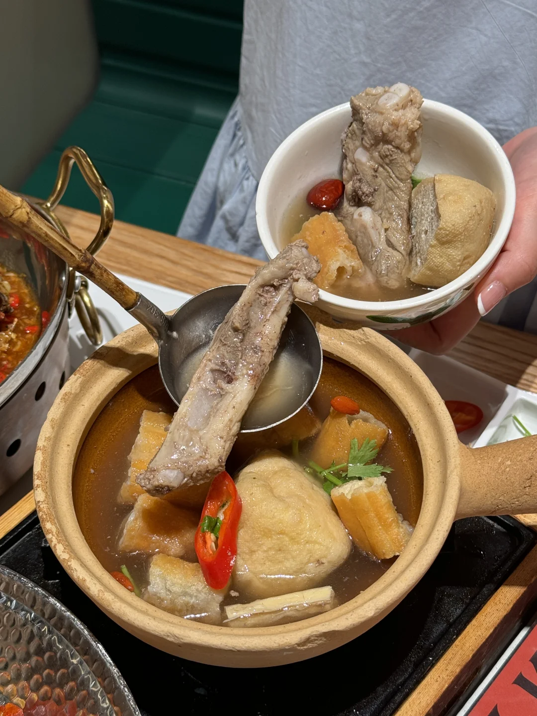 肉骨茶端上来的时候就知道错不了!两人吃点小份就行啦 汤可以🆓续!里面的排骨软烂入味 混合着淡淡的香料味还有汤汁的鲜甜 可以喝连喝俩碗!