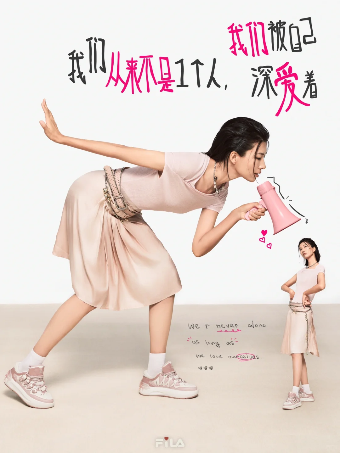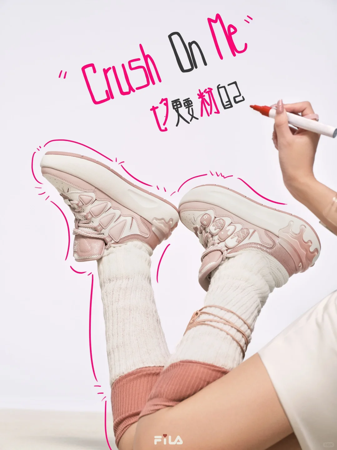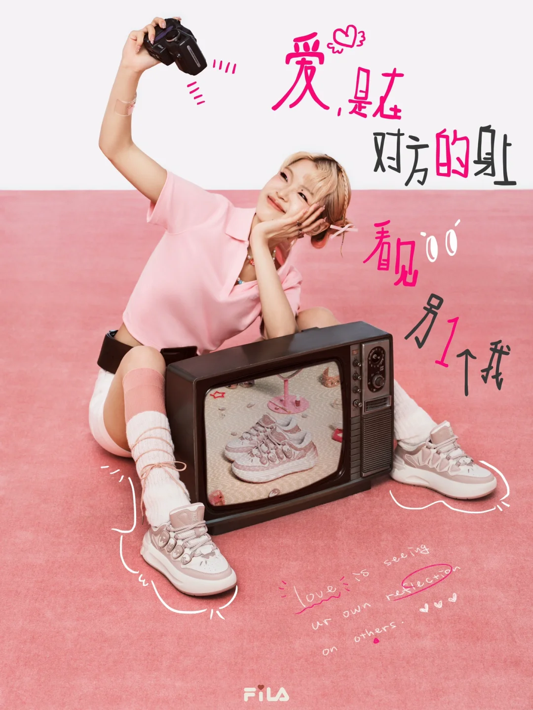 💗我们有多种表达爱的方式,皆是对爱自己的投射💖💕💕 为庆祝今年的七夕,FILA邀请了四位女性,以七夕心动粉萝卜鞋为核心单品,搭配一整套粉色look, 大胆表达“七夕更要粉自己”的态度。