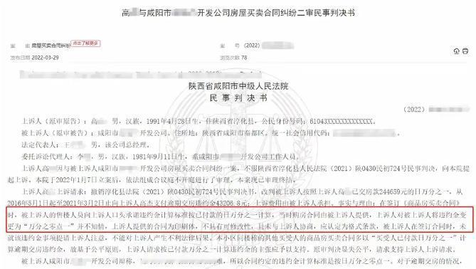 “开发商这次栽了!”陕西,男子花24万买房,由于是期房,开发商对外承诺,每延期交付一天按一万分之一赔偿,结果工期一拖再拖,等到正式入驻时,已经逾期1763天!然而当男人拿着白纸黑字签的合同来找开发商索赔时,竟被告知只能按万分之零点一来计算,“你们这不是骗人吗?”一怒之下,男人将开发商告上法庭,结果法官的判罚亮了! (信息来源:半岛网 问法预告 违约金由万分之一改为万分之零点一?无效!) 老王此刻正在出租屋里愁眉苦脸,一旁的妻子忍不住数落道:“当初就劝你别买,这下好几十万打水漂了!” 这一切还得从5年前说起,那时候的老王刚进城打工,为了给妻子一个交代,便萌生了购房的打算。 可谁料,刚一踏进售楼大厅,就被面前眼花缭乱的楼盘给震住了,望着上面不菲的价格,老王有些犹豫。 恰在此时,一位售楼小姐走了过来,笑着道:“先生,我们今天刚好做活动,今天买享受8.7折优惠哦!” 望着大屏幕里播放的宣传视频,老王迟疑道:“你们这是期房啊,万一没有按时交付,我怎么办?” 岂料,销售员拿出一摞厚厚的购房合同,信息十足道:“先生您大可把心搁在肚子里,我们是大品牌,如果逾期,每天按照万分之一来赔偿!” “那能拿不少钱啊!”打定主意后,老王借遍亲朋好友,再加上多年打工攒的积蓄,最终24万够得了一个96平的小三户型。 之后的时间里,经常带着媳妇来工地看自己未来的家,那心里甭提多美了。 可谁料,半年前情况突然急转直下,因为全国楼市不景气,工地资金出现缺口,房子盖了一半晾在那里了。 对此,老王虽然有些不悦但却毫不着急,反正当初承诺好的,延误一天交付就按照万分之一来赔偿,他甚至巴不得多晚几天。 就这样,一个月过去了,十个月过去了,等到房子交到手里时,已经是5年后了! 这期间老王每天都掰着指头在算,5年多也就是1766天,按照万分之一赔偿,自己起码能拿到4万多块! 可谁料,当他兴冲冲找到前台时,却被告知赔偿款已经就位了,正好4320块。 “怎么才这么点?你们是不是算错了!” 事后,开发商才告知,这是按照万分之一零点一来计算的,房价总计24万,逾期1766天,按照合约规定应当赔偿违约金4320块。 “你们这不唬人吗?当时说好的可是万分之一!” 眼瞅老王不依不饶,工作人员拿出了签字合同,在一段极不起眼的角落,找到了一句话:违约金按照房价的万分之零点一来赔付,双方各自签字,一式两份。 “你们简直是欺负人,明知道我们老百姓看不懂这些数语!” 彼时,老王才明白上了售楼小姐的当了,于是一怒之下,将开发商告上了法庭。 一审时,法官以购房契约合法为由,判开发商赢,支持4320的赔偿。 为此,老王选择上诉,坚决和无良开发商斗争到底! 终于历经多日的等待,迎来了二审。 这一次法官认为,开发商事先承诺的与合同不符,最终判老王获胜,要求开发商赔偿其违约金43206.8元。
