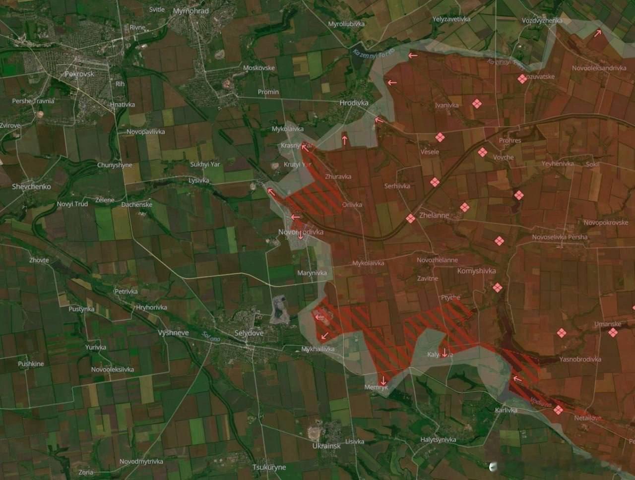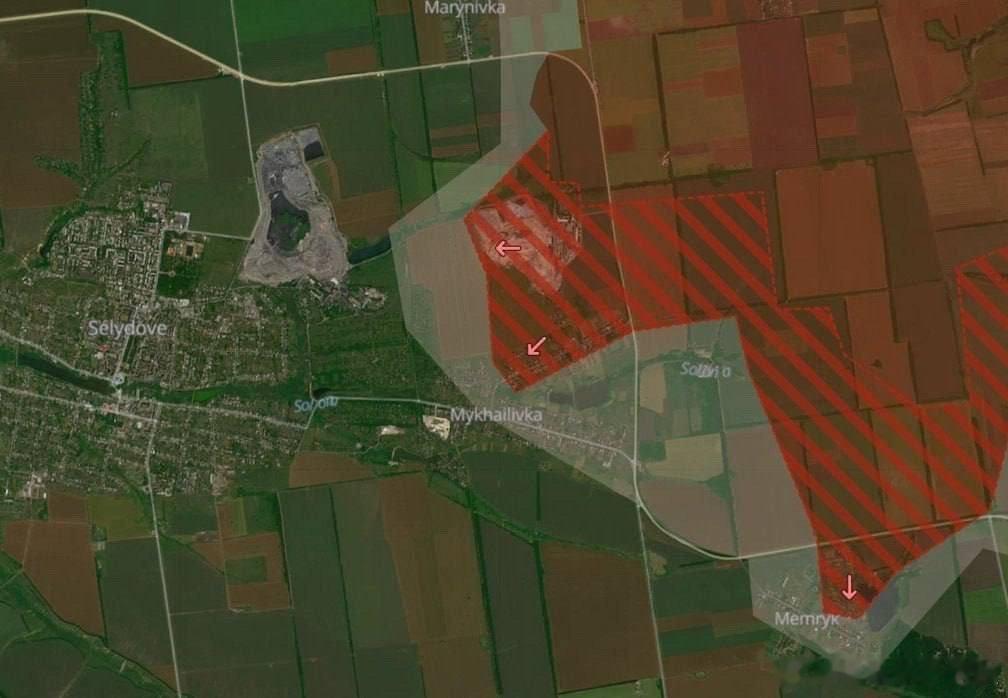 塞利多沃市波克罗夫斯克方向战斗的大致地图。