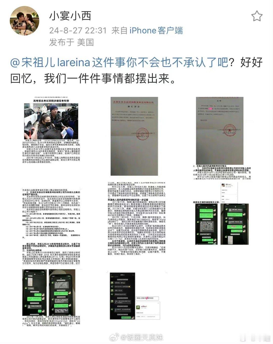#宋祖儿工作室声明#真是各推各的责任。 工作室说税务是前公司遗留问题,喜天声明说税务和她们无关。两方踢皮球到现在没个说法。 高考资格问题现在又被爆出,机构被实锤是无资质出纳证明的,而教育局居然审核过了,真是好大一个瓜#小宴小西曝宋祖儿涉嫌高考作弊#