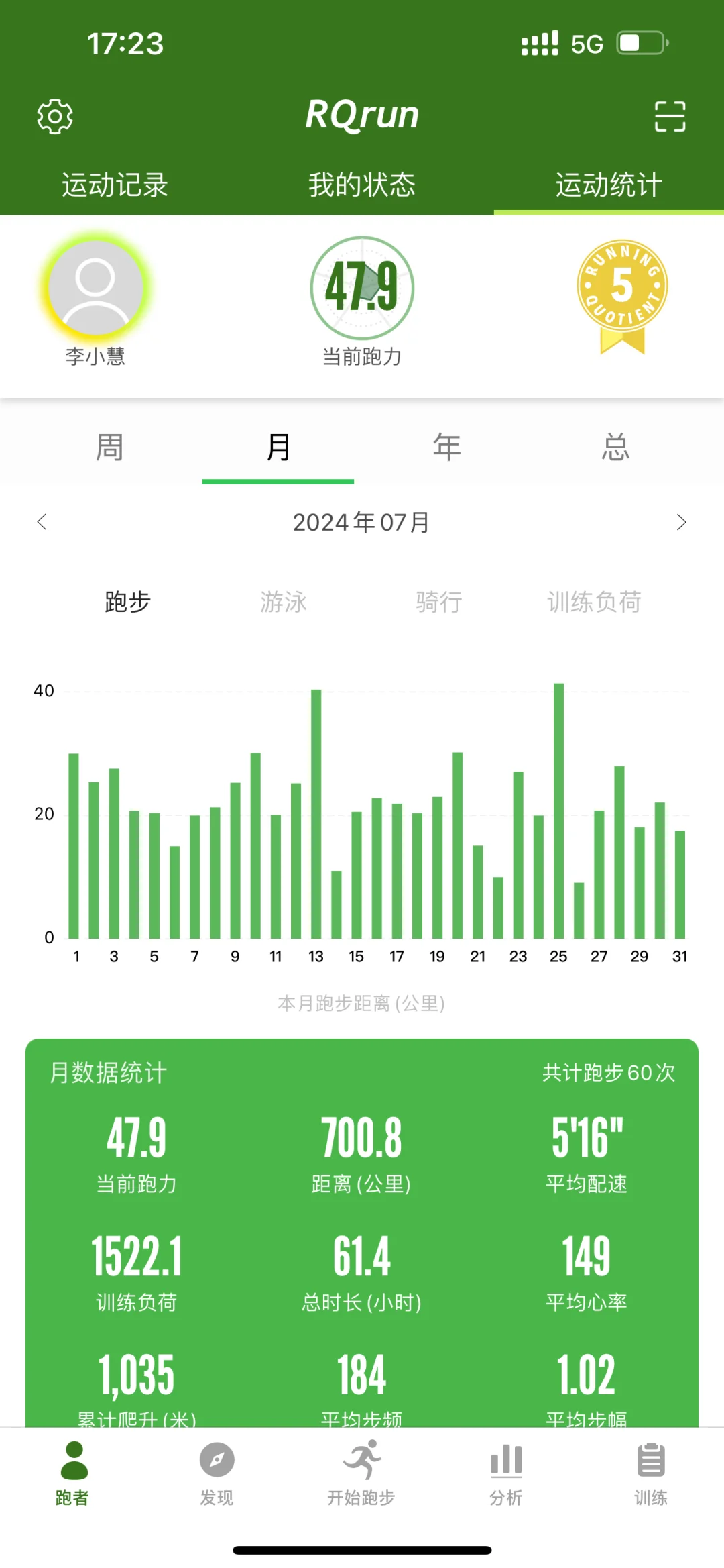 说说这几个月堆有氧的感悟吧 以前觉得堆有氧 400+ 应该是我极限了吧 也没有想过 会有一天2练 (跑步) 月跑量500+ (5-6月)7月 700公里 除了时间上的花费比较多 身体和腿 都在一个个阶段中渡过 适应期 疲劳期 都会有 到现在已经完全适应一天2练 且身体会给出信号 到时间跑步了😂 大概这就是所谓的跑瘾吧 其实真的没什么天赋 只能笨鸟先飞 有时候偏执不一定是坏事 决定行不行的永远不是你的身体 而是思想 💭共勉