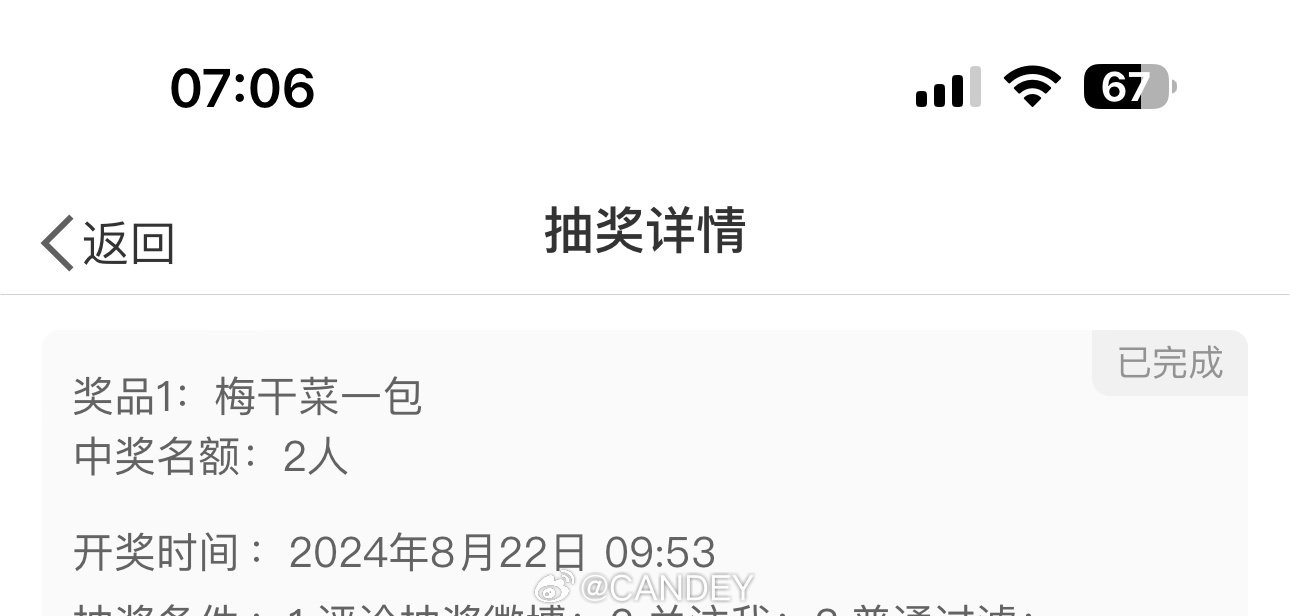 前些天速战速决抽了梅干菜的奖,结果又有一个小伙伴迟迟不填信息,平台入口都关闭了,咱也不等了,送给别的小伙伴吧。