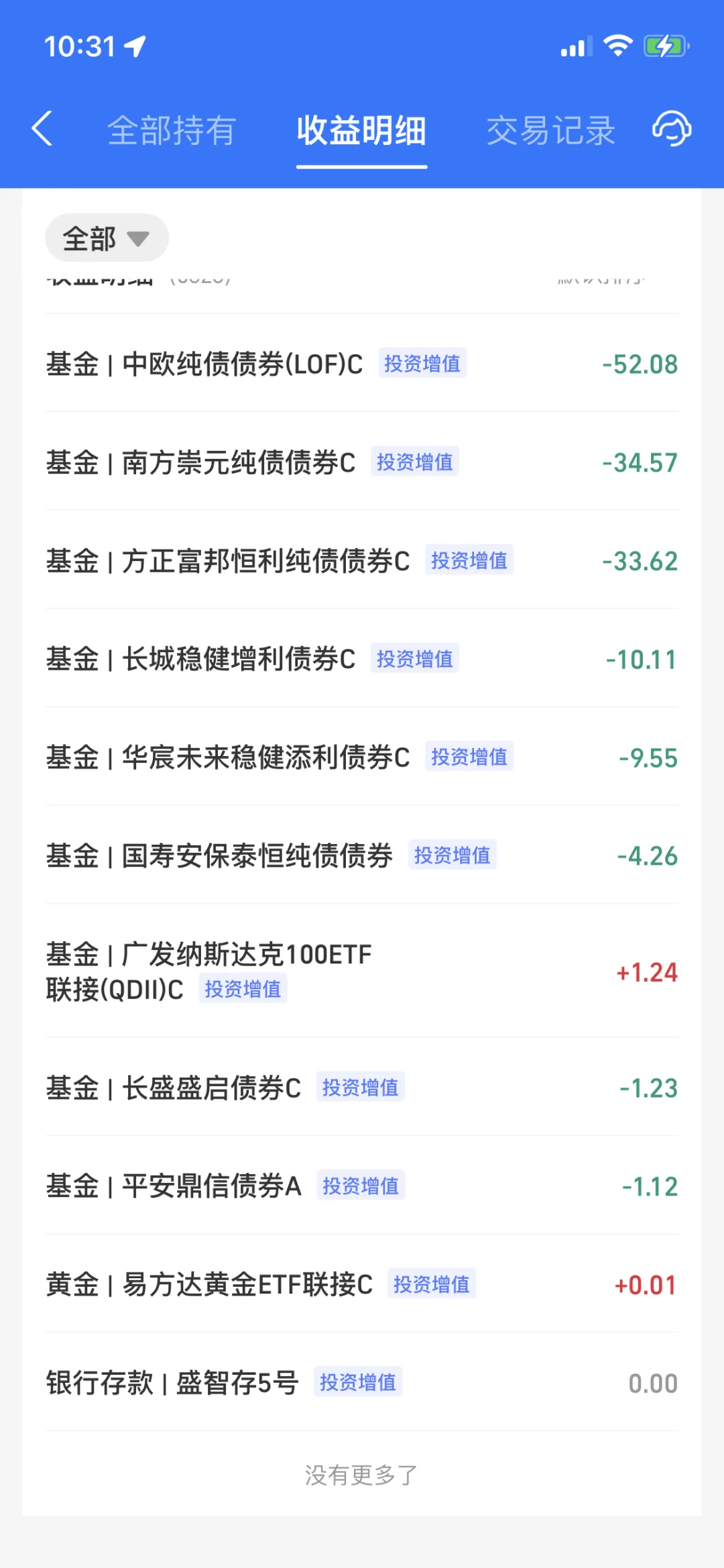 我的理财日记 又亏钱了,头铁的下场,呜呜呜,难过, 白打一天工,今天开局还是绿,无语, 昨天跑了一部分,今天继续跑, 股涨涨跌跌,至少还涨一下, 这次都是连续在亏钱, 转入货币避险去,不等了~