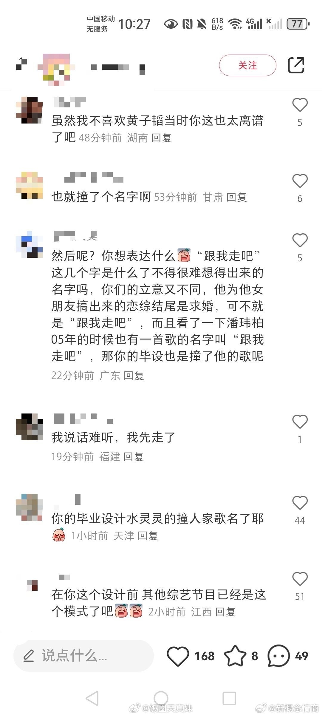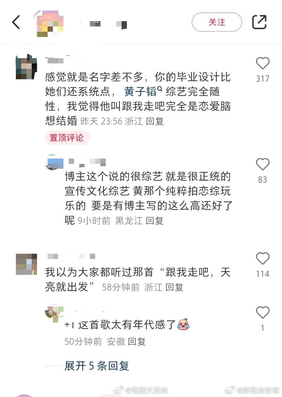 有网友称黄子韬徐艺洋的恋综《跟我走吧》和自己2019年写的毕设撞了