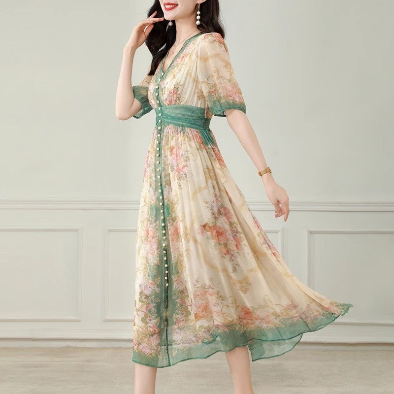 丝滑桑蚕丝,夏天穿简直了,轻飘飘像云朵,温柔又高级,一袭连衣裙就能美翻全场哦!