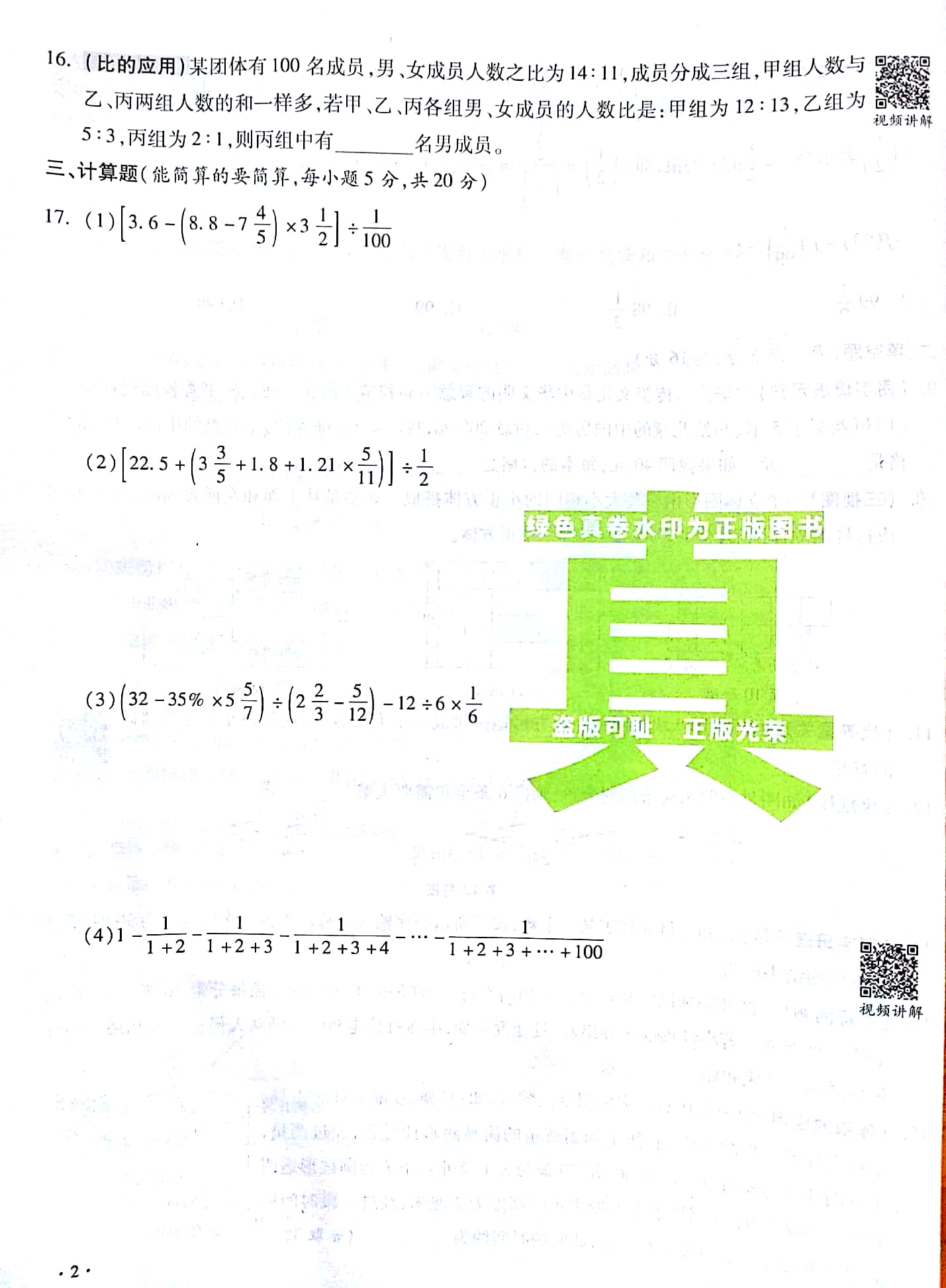 小升初数学 分班考试