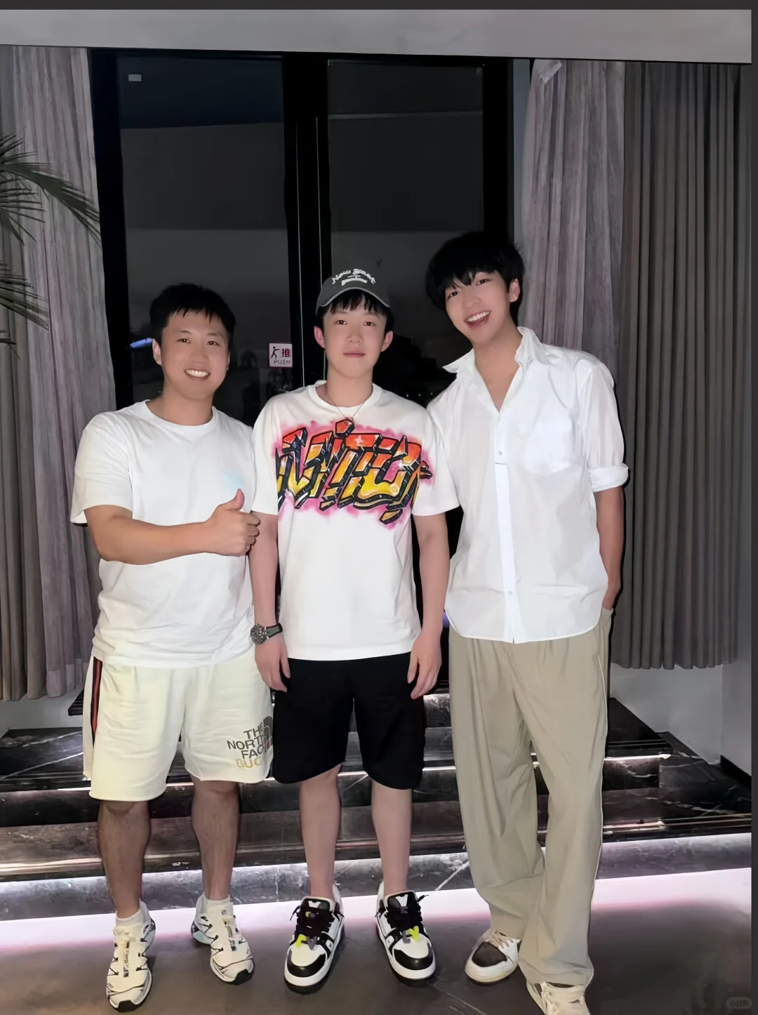 图是qinghuan那边来的,王楚钦和肖指导儿子同框,这组合有点新意!