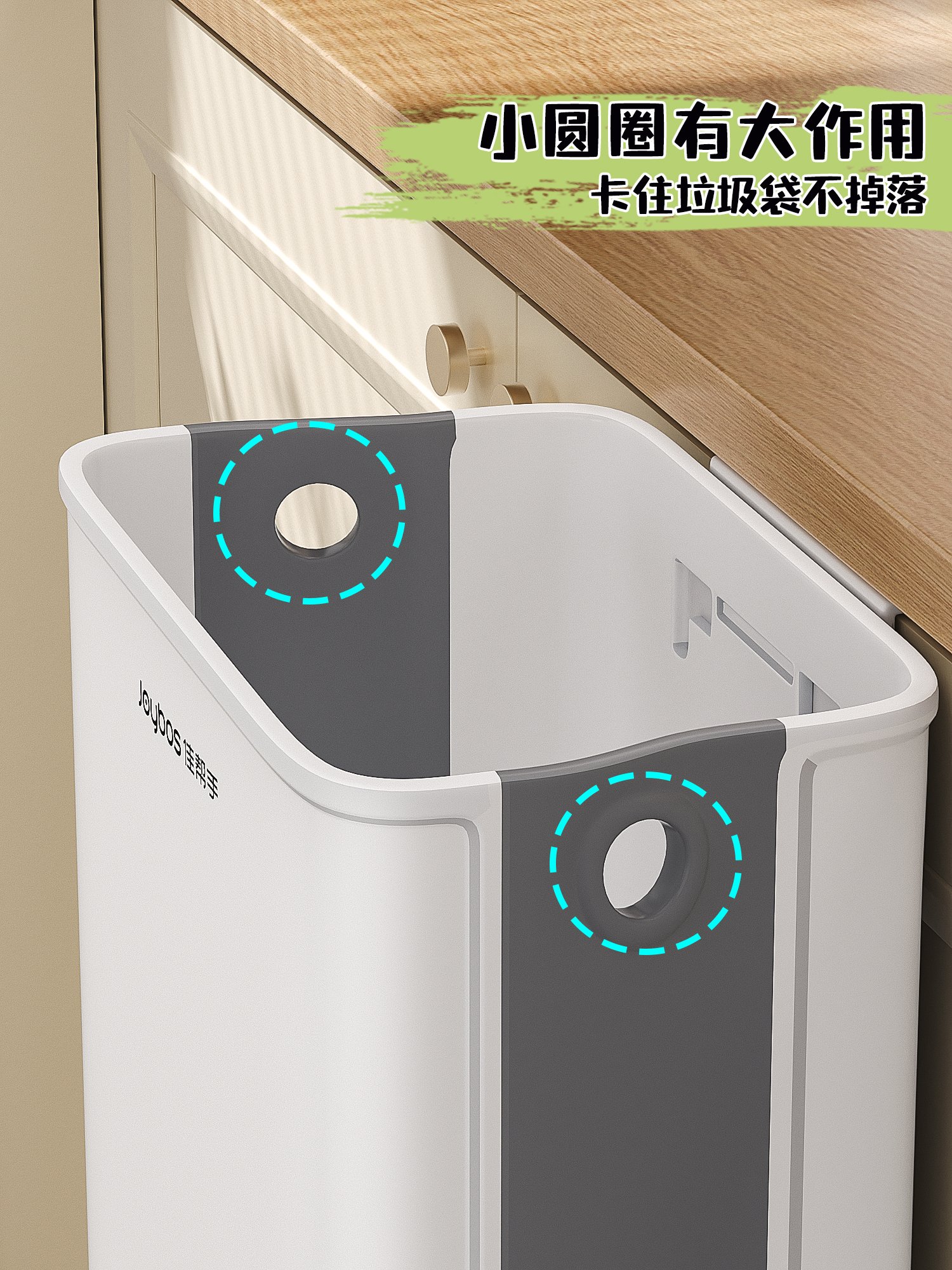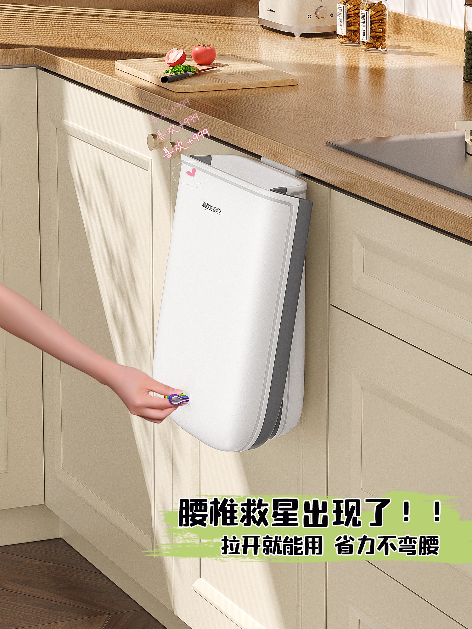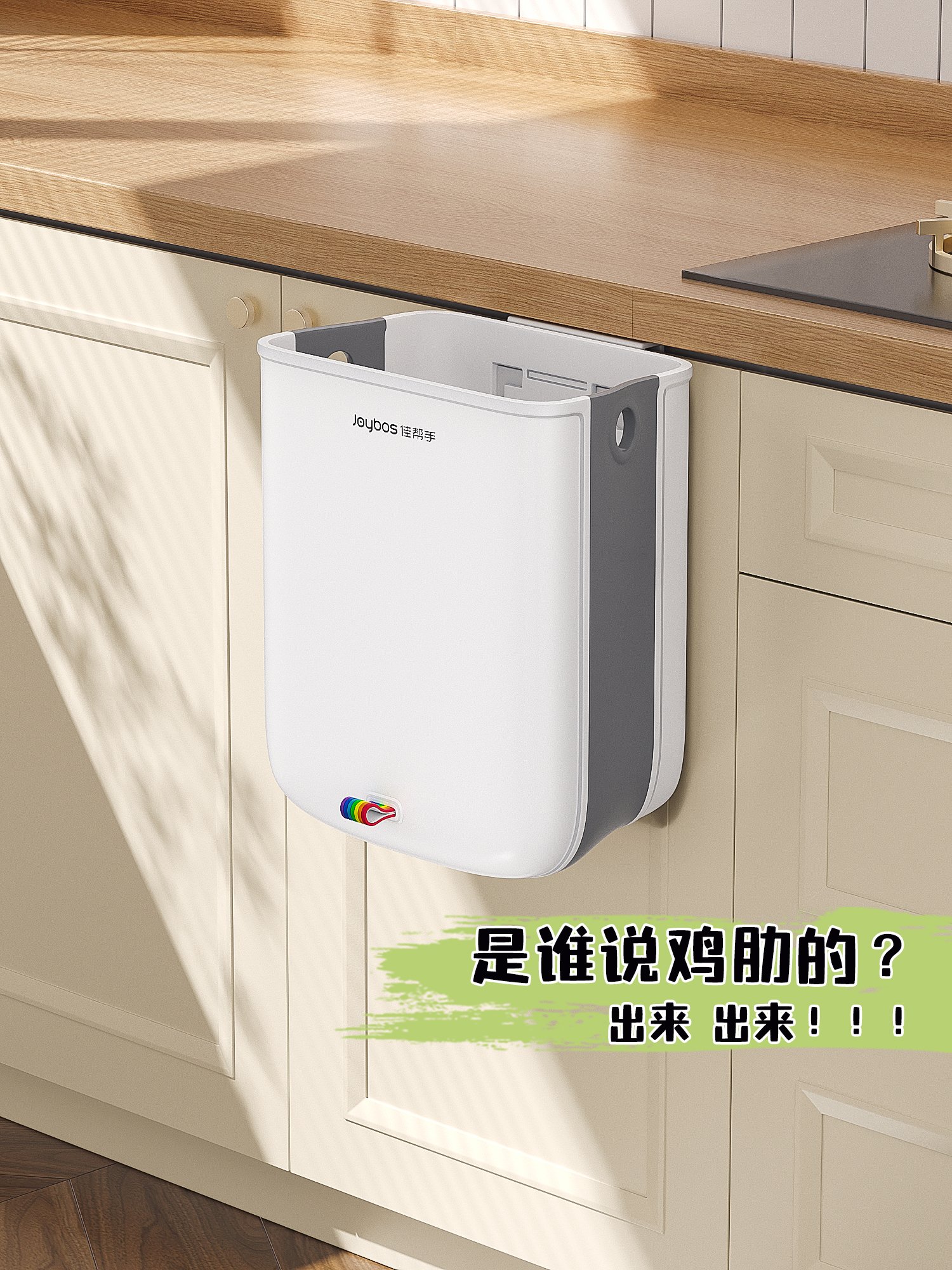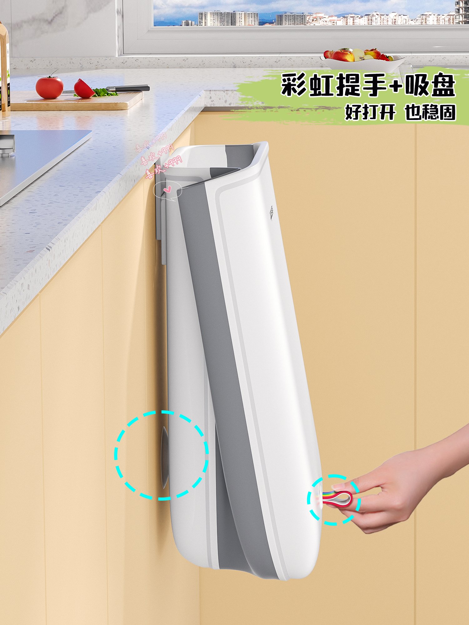 小厨房适用的悬挂式折叠垃圾桶,扔垃圾不弯