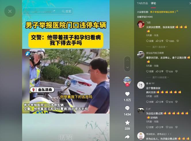 “这个交警火了!”山东,某热心市民举报医院门口有车子违停,结果交警抵达后却将举报者怒斥一顿“人家带媳妇孩子看病,你让我罚,我下得去手吗?”视频传到网上,引来老百姓点赞,“这才是人民的好警察,希望人性执法能传遍全国”! (信息来源:虹国际 男子举报医院门口违停车辆 交警:他带孩子孕妇看病,我下得去手吗) 这是摄像头拍下的真实一幕。 大中午,山东济南某医院门口,一个路过的戴眼镜市民被面前违停的车子挡住了去路。 于是愤而掏出手机拨打了110。 本以为交警到来后,会对着这些乱停乱放的车子狠贴罚单,出掉心中的这口恶气。 岂料,交警小哥缓缓来到违停的车子面前,通过车主留下的联系电话,给对方打了过去。 时间一分一秒的过去了,举报人就傻傻的站在一旁,脸上不时闪出期待和失望。 就在此时,交警跨上摩托就准备离开。 这下子,“眼镜”不答应了,他怒斥民警不作为,这辆车停在黄线外,挡住了来往交通为什么不依法处理? “你觉得我下得去手吗?” 原来就在刚刚,交警得知车主一大早就送怀孕的老婆和孩子来看病,的确是来不及找车位,就匆匆跑上楼了。 眼瞅着举报人面有不服,交警又开口道: “人性一点 他就是带着孩子看病去了 照顾照顾 交警执法也得讲求人性不是?” 最终,车主逃过一劫,免去了被贴罚单。 本以为是一段再平常不过的对话,却不料刚一发到网上,就火遍了各大平台。 有网友,在评论区这样感慨道:“人性,说的太好了!执法就应该有这样的觉悟” 还有人给这名山东交警点赞,夸奖道:“这才是为人民服务的榜样,而不是像某些人拿着鸡毛当令箭!” 不久前,在宁夏发生了同样的例子,但故事中的执法人员就没那么“人性化了”,甚至还有仗势欺人的嫌疑。 2019年7月23日下午,闫某开着宝马来到卤肉店买晚餐,由于时值下班高峰期,广场上已经没有停车位了。 于是,他便将爱车临时停靠在了空地上。谁承想,等到他心满意足的返回时,车子原地消失了! 正当其惊慌失措,准备拨打110时,耳边突然传来了卡车的轰鸣声。只见不远处,几名执法人员正拖着他的宝马往马路上走。 下一秒,阎先生赶紧跑过去,掏出证件,道出前因后果。 不想,对方毫不理睬,硬是把车给没收了。 等到他失魂落魄的回来时,见到了愤怒的一幕。 只见原本空旷的地面上,突然多出了一个“违禁”指示牌。 不对啊,刚刚没有啊,刹那间他明白了,原来自己是掉进人家设好的圈套了! 对于此等“钓鱼执法”的行为,阎某怒不可遏,于是直接找上执法队去评理。 结果,人家一拖再拖,等到车子再一次送还给阎某时,已经过了整整一个星期了。 令他心痛的是,宝马车上各种擦痕,多个元器件损坏,轮胎更是接近报废状态。 你们开着车干嘛去了?然而面对车主的质问,执法人员却不予理会,只是丢过来一张“免责书”,让他签字走人。 事后,阎某恼羞成怒,一纸诉状将执法队告上法庭,要求索赔21万。 同样的情况,两种天差地别的结局,告诉我们人性执法对于老百姓是多么的必要,这个山东小哥值得全国推广。 对此你怎么看,欢迎在评论区留言、讨论。