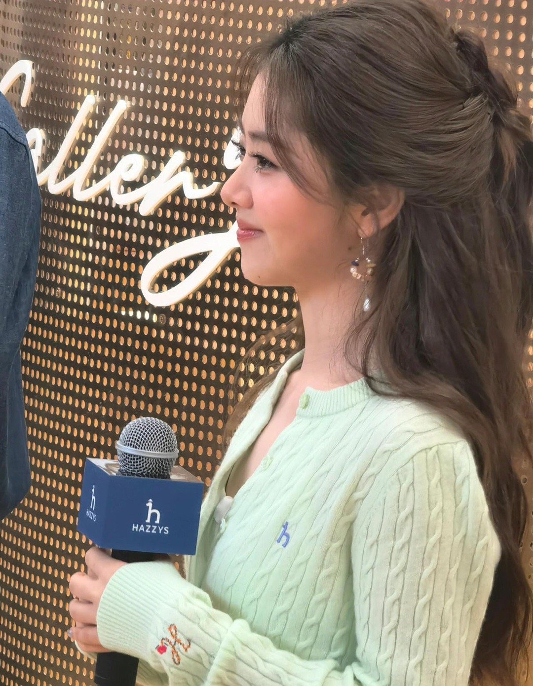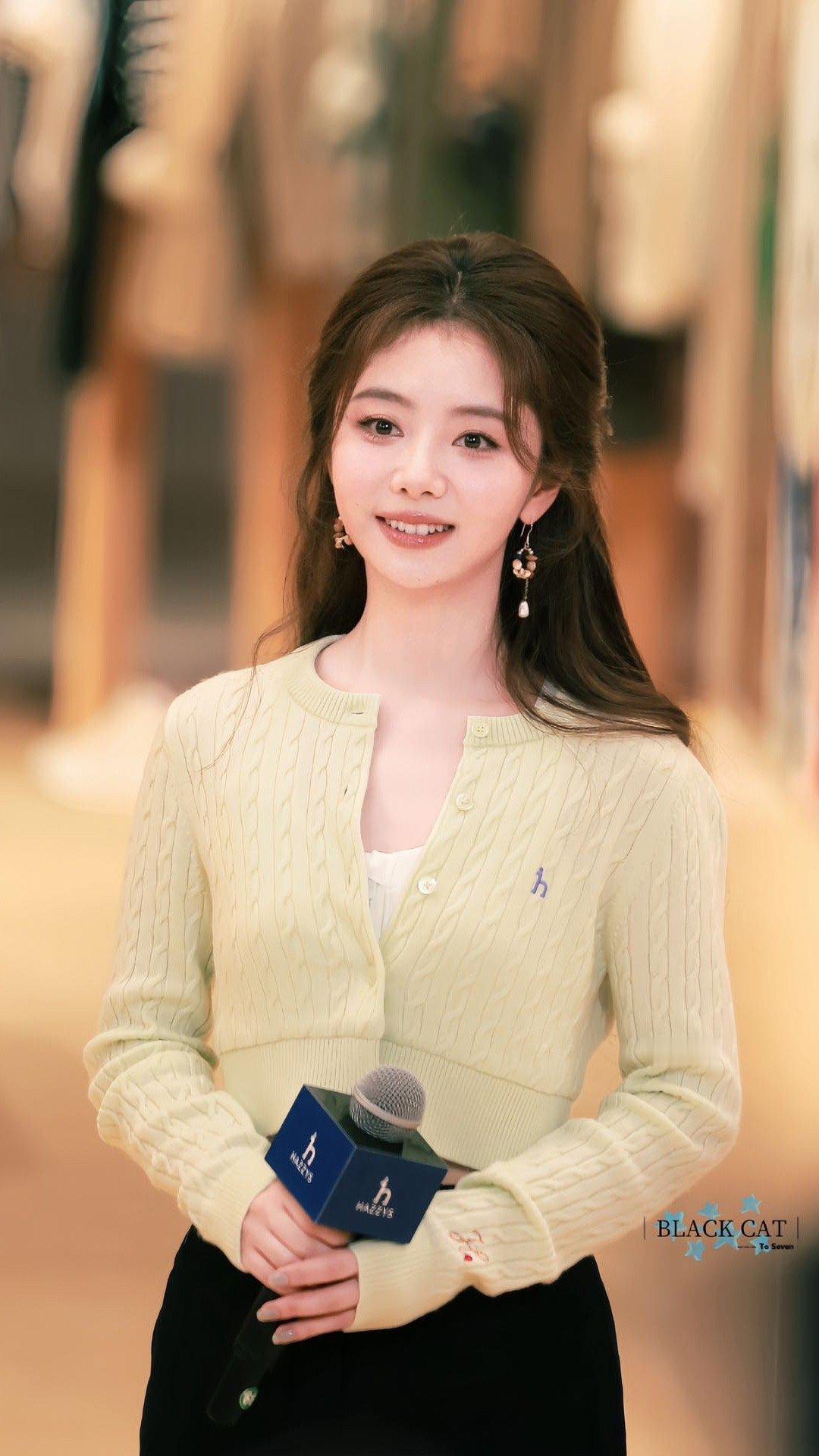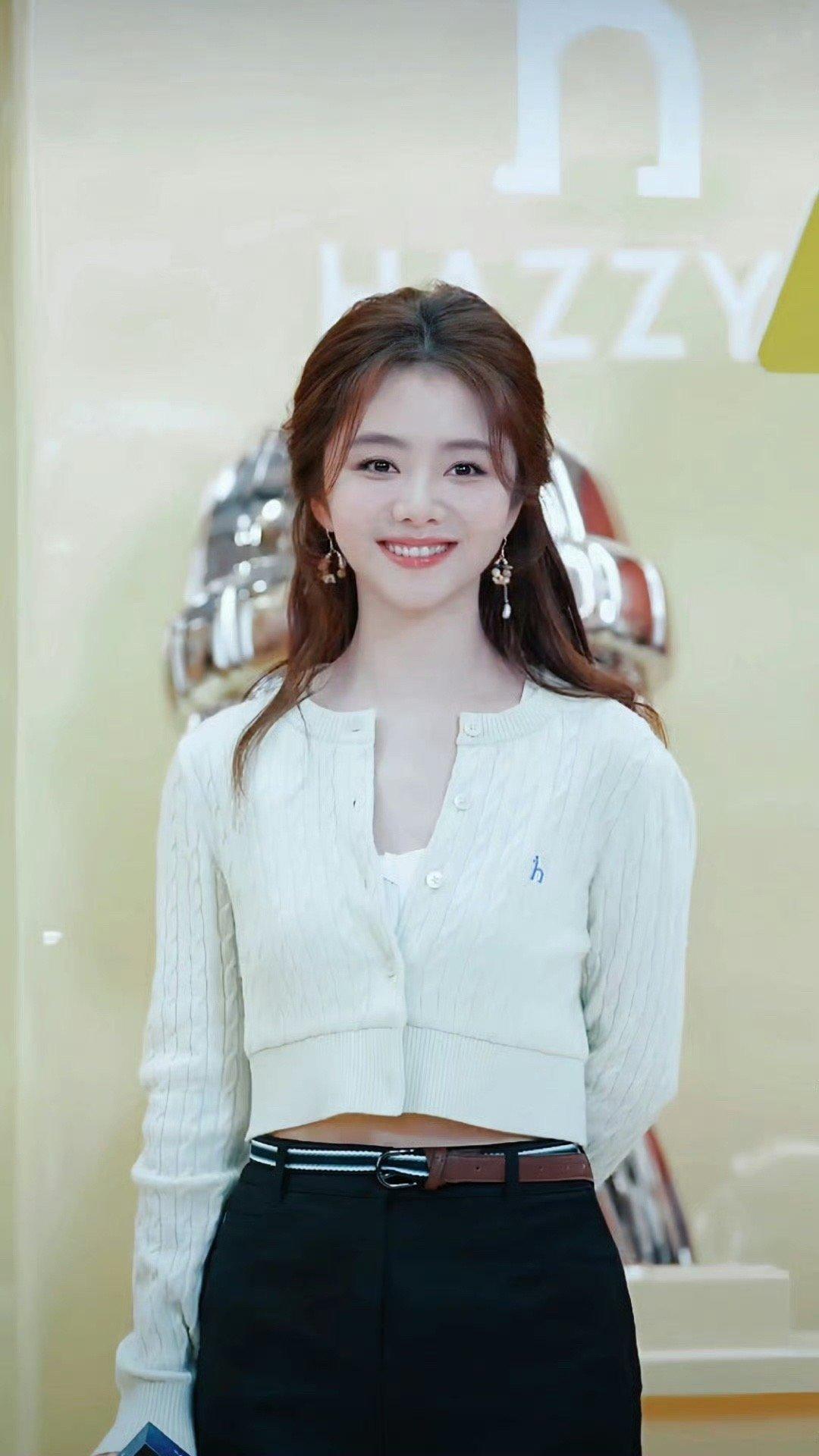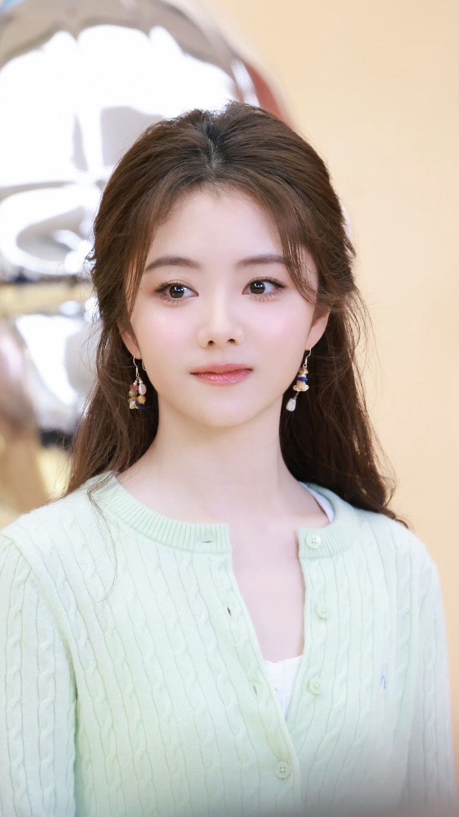 #谭松韵沈阳线下活动#今日线下活动 绿色露腰针织开衫+编发披肩,妥妥青春女大~