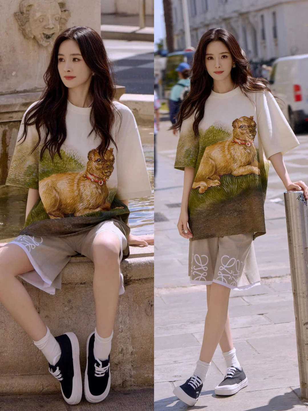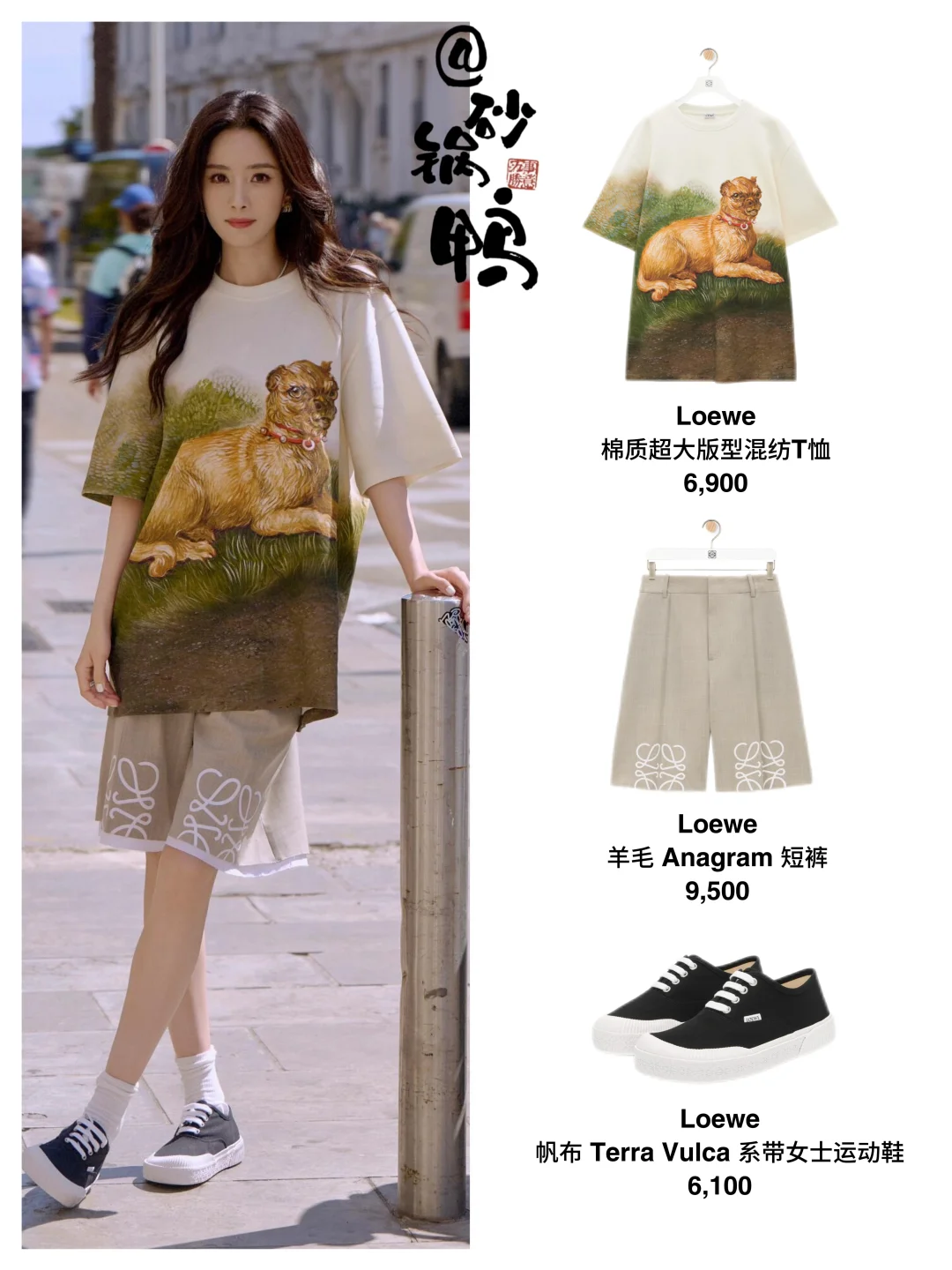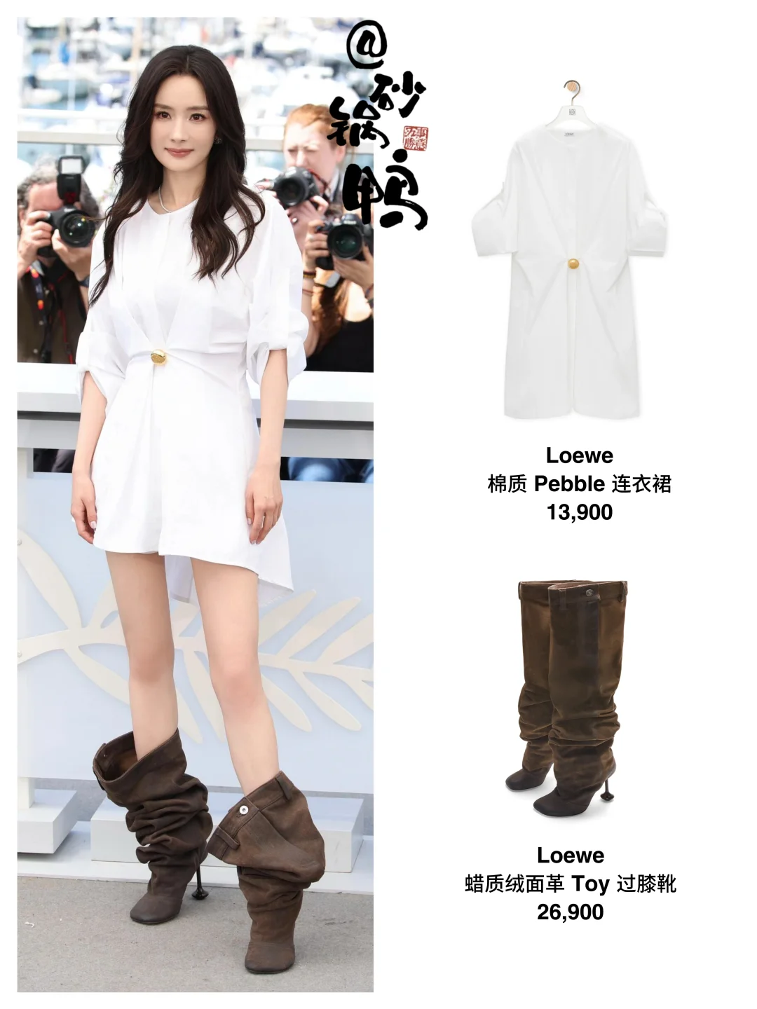很喜欢杨幂身着罗意威的这三套Look! 一组是休闲运动的搭配,身着最新系列动物印花T恤、羊毛Anagram 短裤与帆布鞋漫步于复古建筑与棕榈叶林间,尽享悠然夏末~ 一组身着白色Pebble 连衣裙以及棕色麂皮 Toy 过膝长靴,亮相戛纳电影节《酱园弄》Photocall 环节 还有一组是身着驼色皮革夹克搭配同色系 Flamenco Purse 手拿包,走在巴黎的街头,时髦一姐不是随便说说~ 图源:杨幂,罗意威