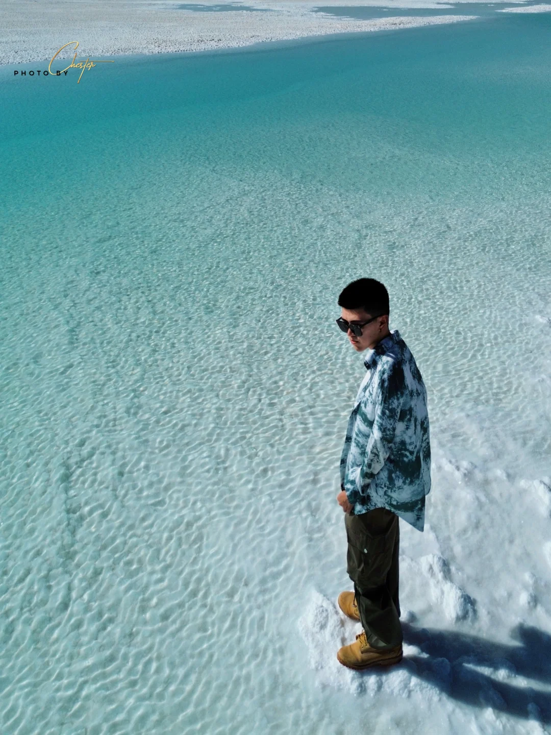东台吉乃尔湖是经过长年干涸、洪水决堤、制盐企业干预、泥沙沉淀之后,待水分蒸发到某个临界点,非常机缘巧合下才形成了现在的色彩。