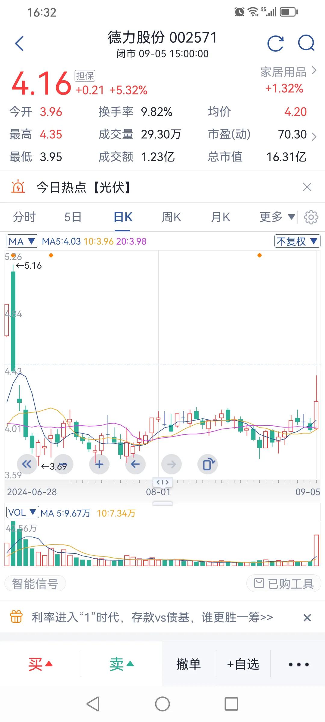 底部崛起的股票:捷成股份、正元智慧、德力股份 今天我国A股大盘,似乎“回暖”了,上证指数、深证成指、创业板指数均小幅上涨。 令人遗憾的是,前期牛股出现分化,深圳华强、科森科技等继续领涨,但也有相当一部分这两天掉头向下,走成了“A”字图形,比如国风新材、冠石科枝、川发龙蟒、奥克股份等。 就我的性格而言,我是比较倾向于稳中求进的,所以我会关注一些底部区域崛起的股票。明天我计划重点关注以下三个:捷成股份(300182)、正元智慧(300645)、德力股份,将它们放进自选股了。 需要说明的是,选择这三个股,主要是考虑到股价处于底部区域相对安全一些;放进自选股主要还是为了方便跟踪观察。涉及买卖务必独立思考。股市有风险,投资宜谨慎。