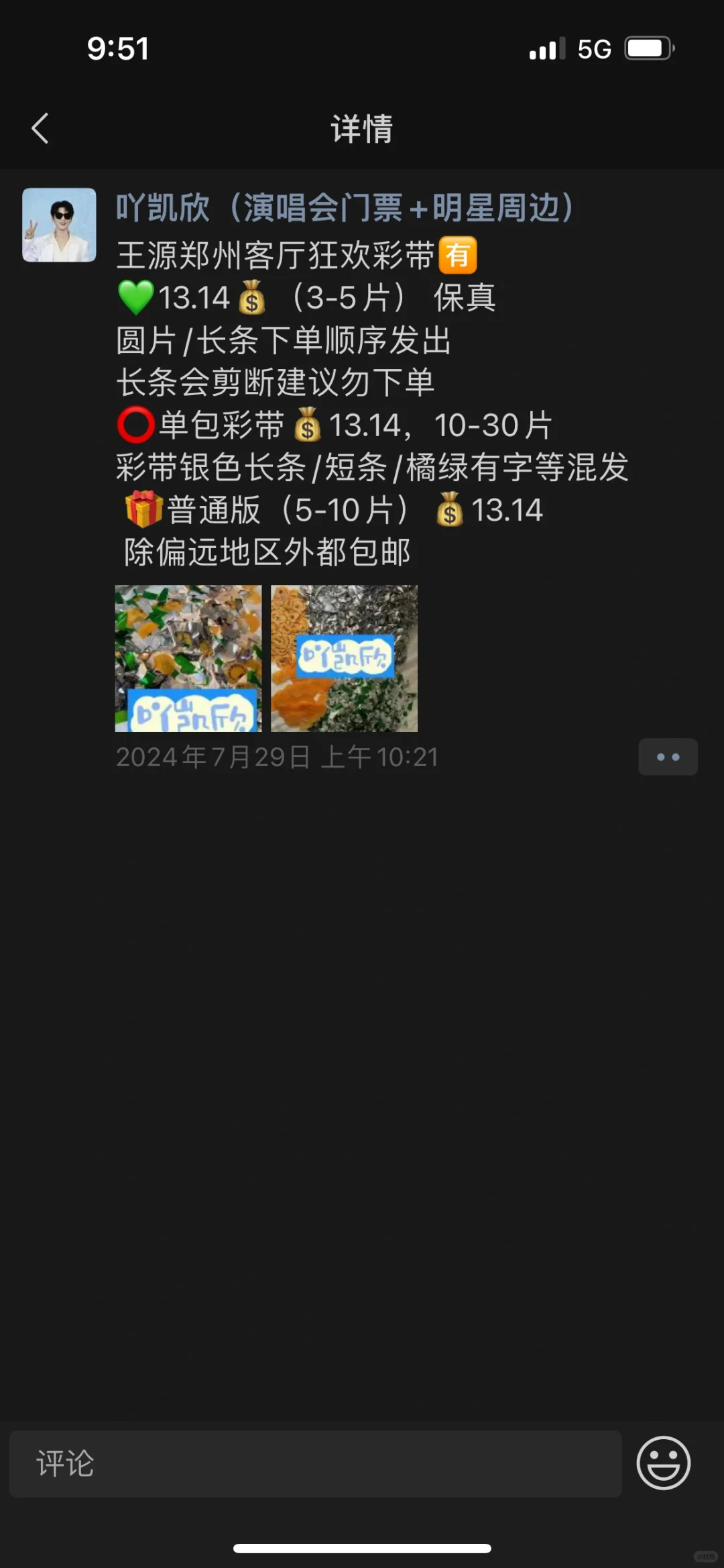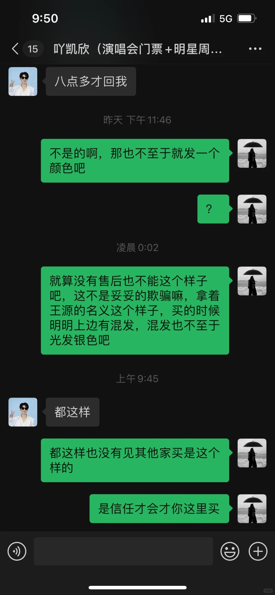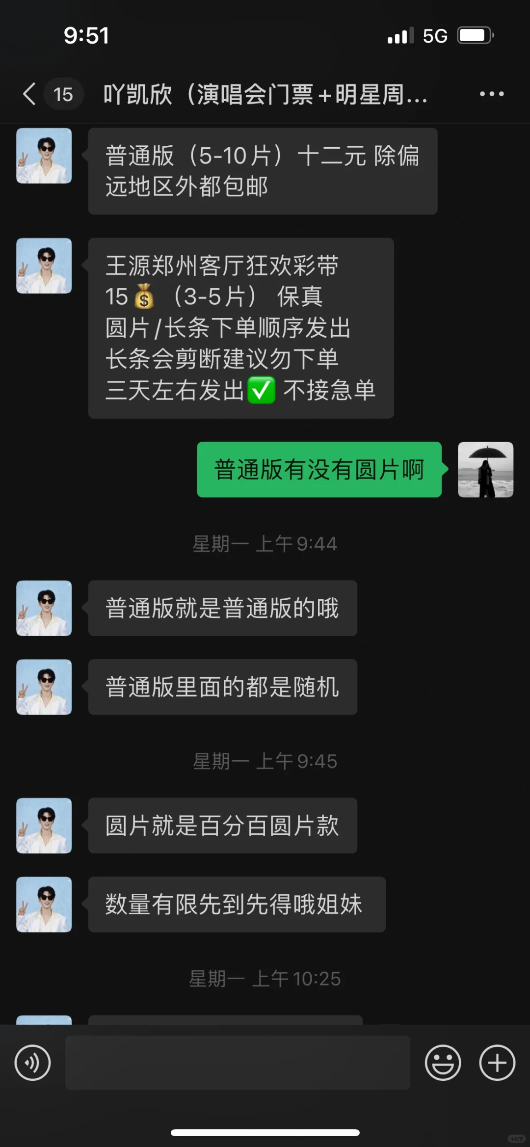 我是通过wx购买,一开始说银色长条短条橘绿有字混发,我收到货就是全部银色,混发也不至于全发银色吧,打着王源名义买王源演唱会的彩带,骗粉丝,真是侮辱自家人,不配粉小凯,只能说让大家都避雷看清人再做选择
