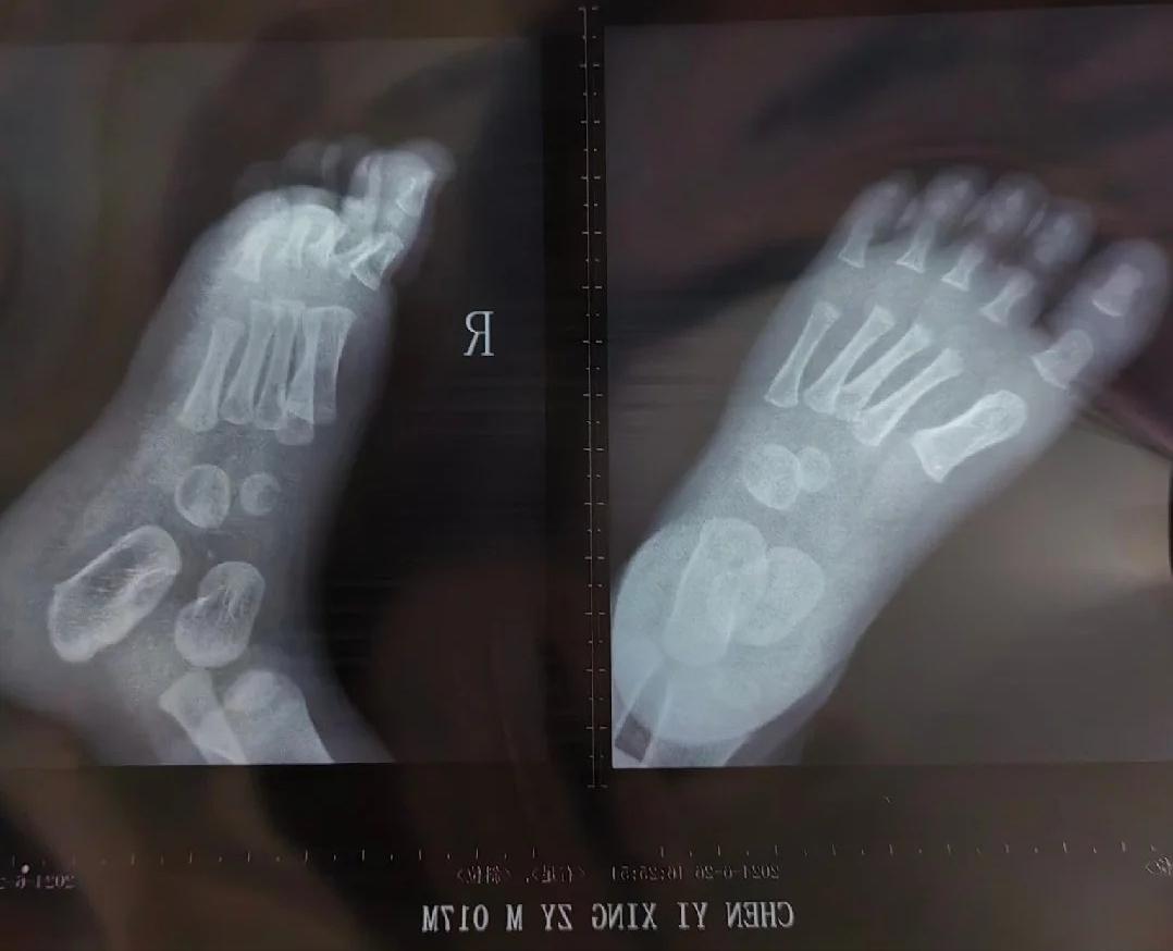 人类幼崽手部的X光照片,看起来骨头都不是连在一起的 其实中间的那些“空隙”,并非什么都没有,而是X光拍不出来的软骨组织,也被称为骨骺线。 手部X光照片,也是确定孩子“生物学”年龄的最可靠方法之一,也就是我们常说的“测骨龄”。 通过腕部的骨骺线,可以判断孩子是否早熟,还有没有长高的空间。 #你知道吗#