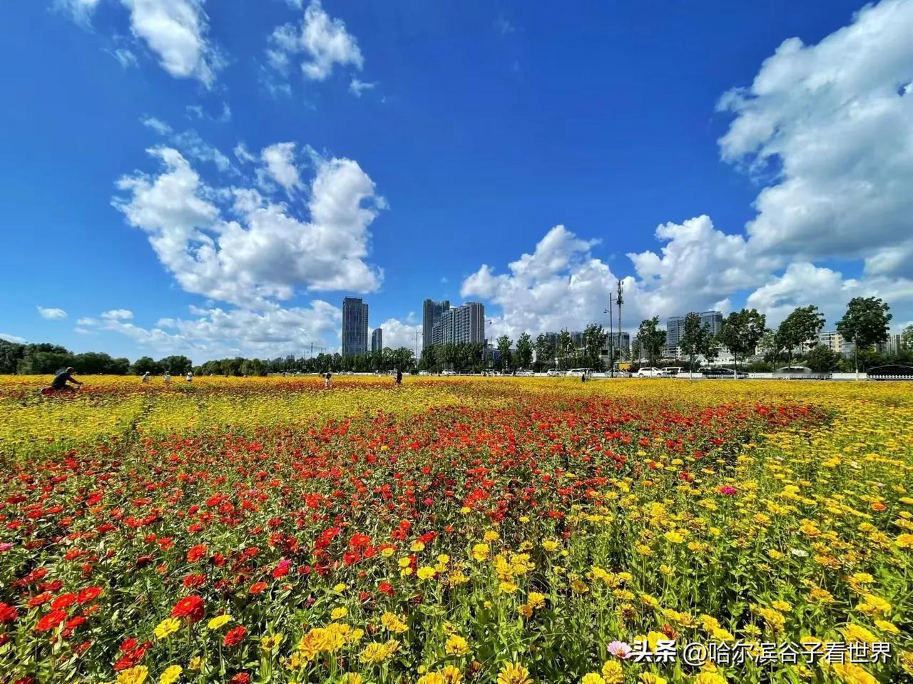 #哈尔滨国庆氛围# 我的家乡大美哈尔滨国庆节氛围拉满!防洪纪念塔前菊花绽放,吉