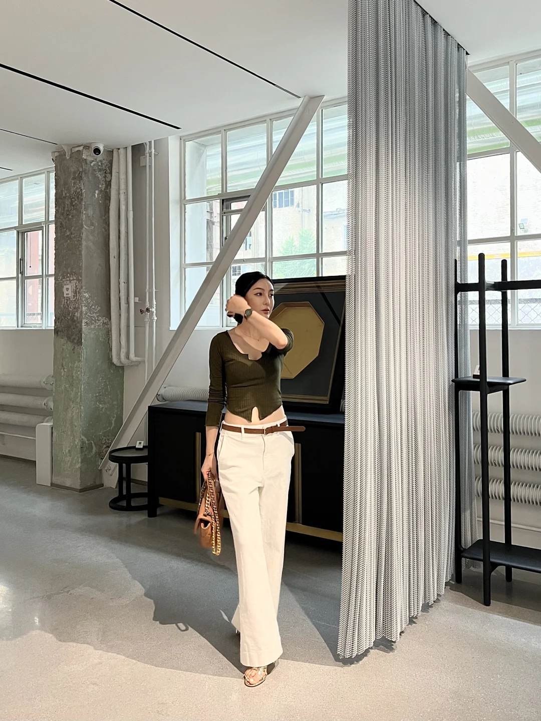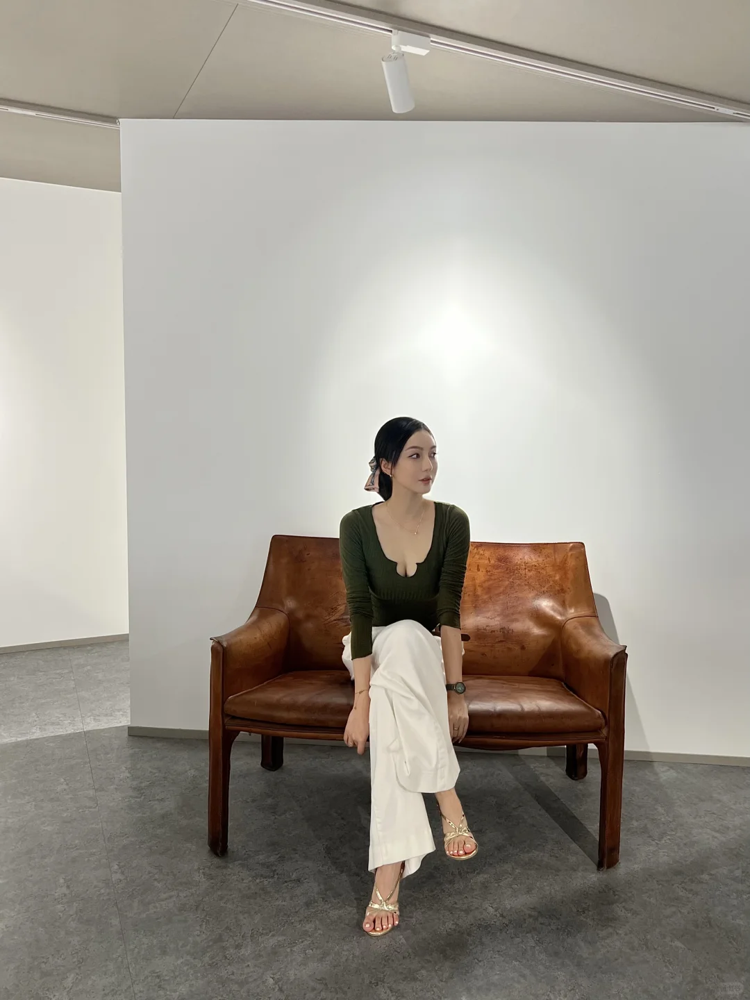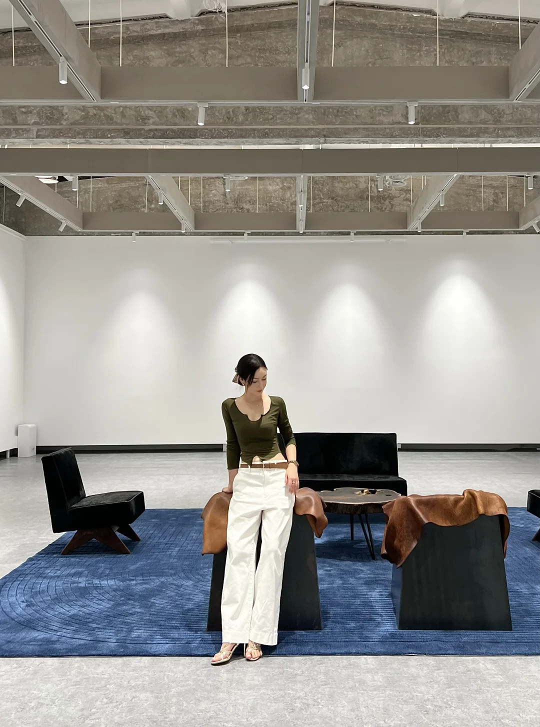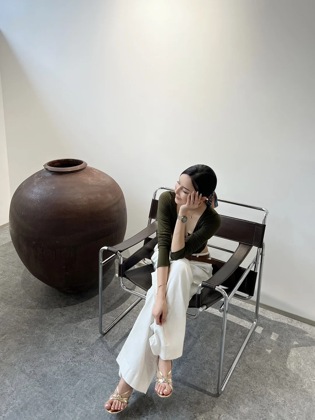 还坐到了一直很热门的“瓦西里椅子”🪑,看起来是钢管架和几条牛皮的单薄样子,但坐上去比想象中稳很多,支撑力很强👍🏻,超适合放在客厅角落摆摆杂志作展示性家具。