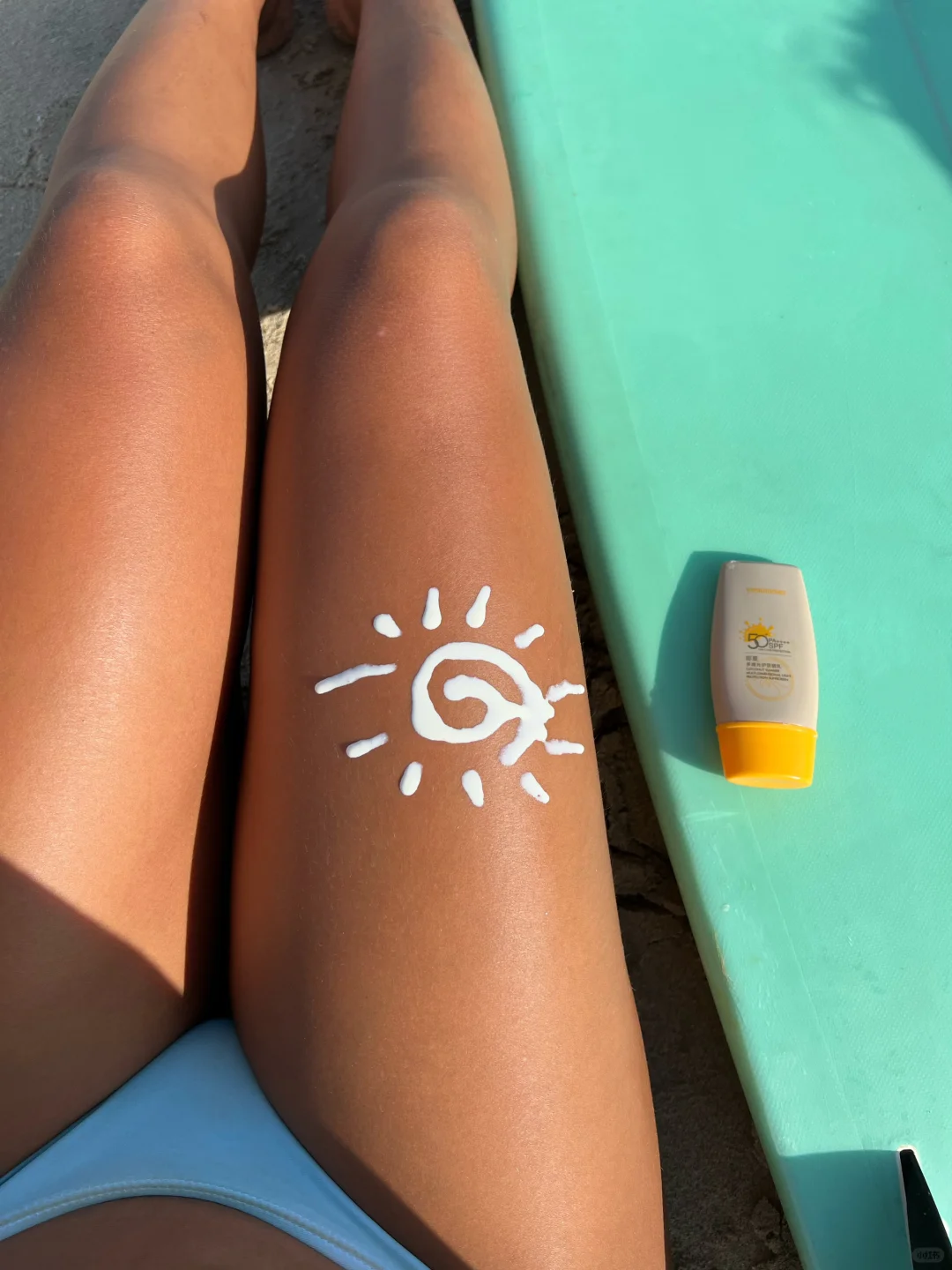 结果后来有两天太阳特别大,我穿比基尼👙下浪,只用了防晒泥涂脸和防晒霜涂脖子,我怕走光还穿了一件小外套,但是平时晒的少的腰上一圈都晒红晒伤🔴了,晒伤的地方又痒又脱皮,回去养了一个星期才好😭