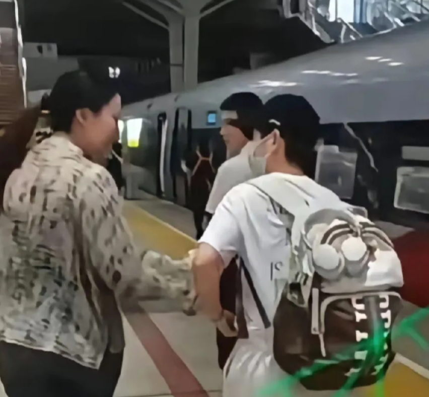 孙颖莎妈妈高女士送别在高铁站女儿莎莎,舍不得女儿,孙颖莎最近这几天回到了河北石家