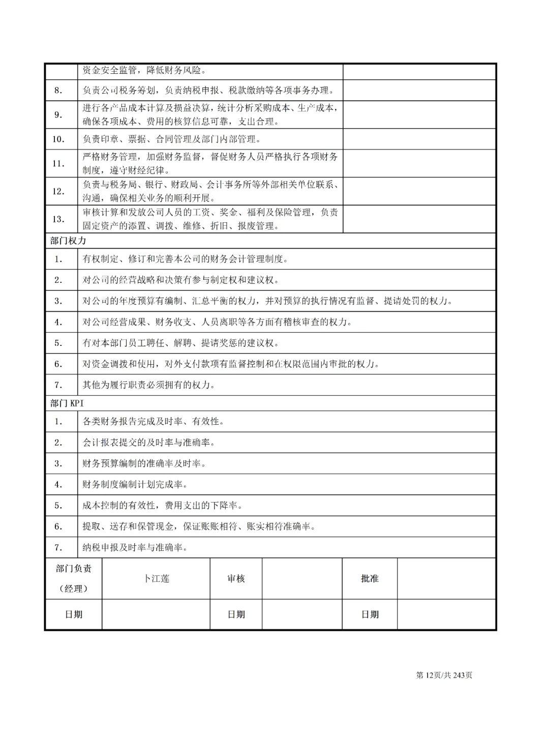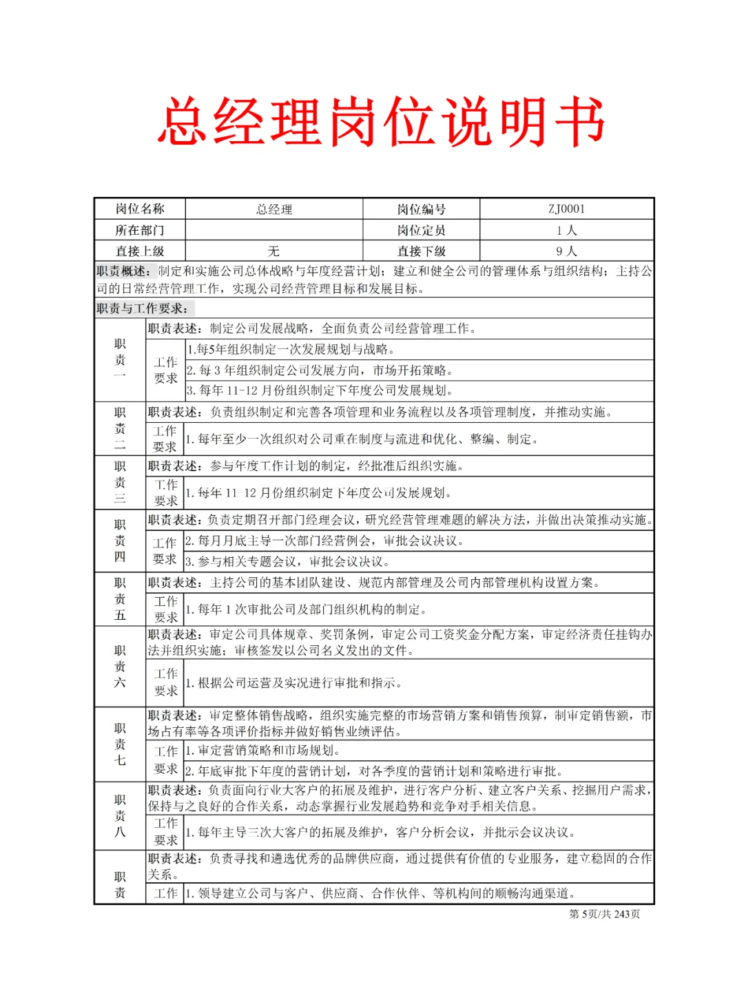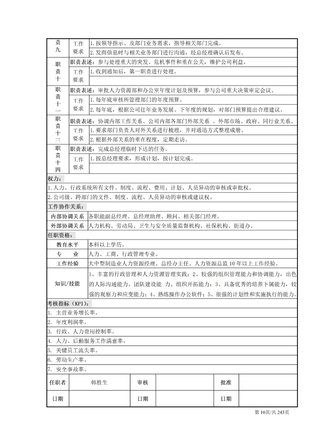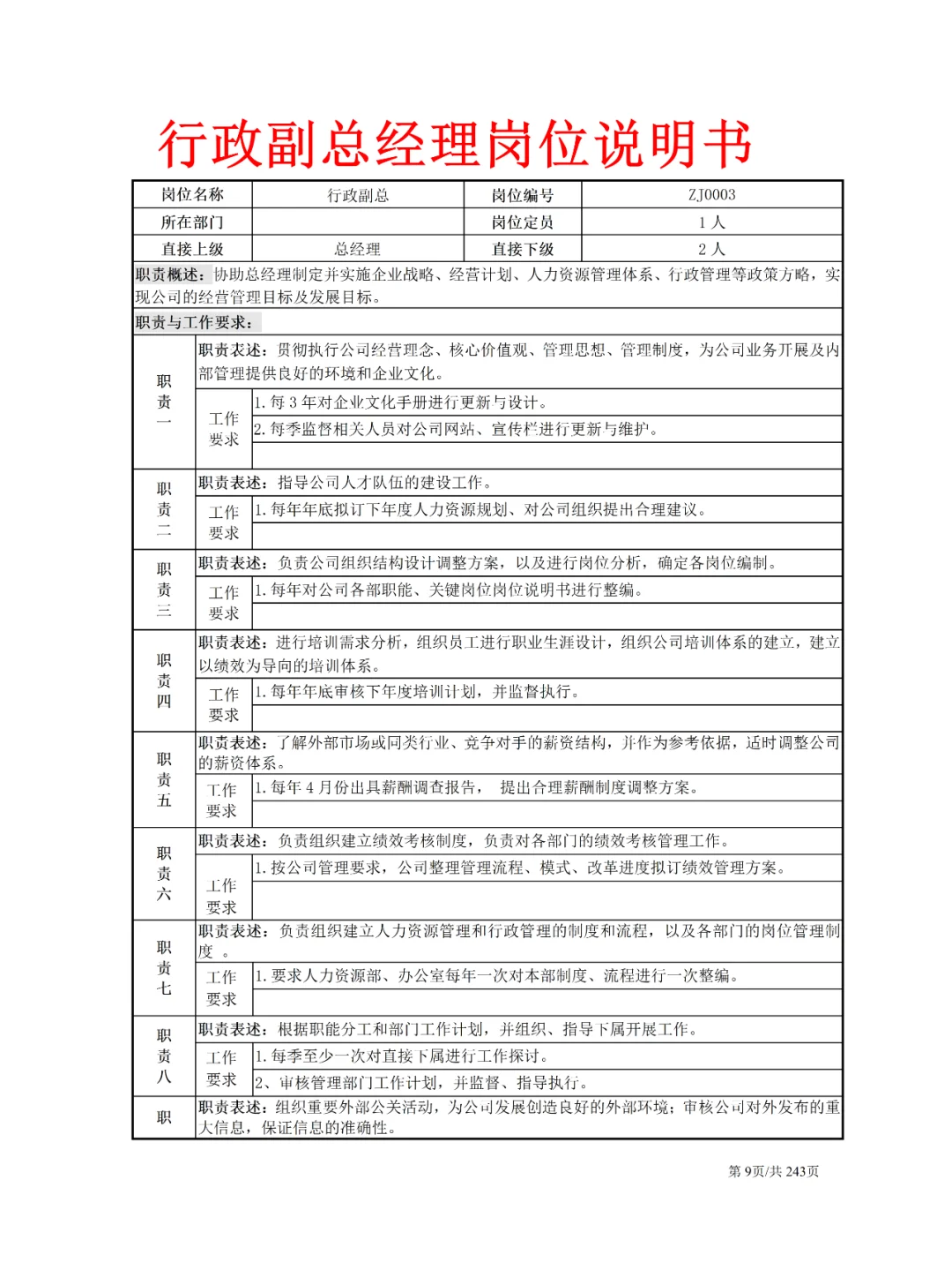 部门职能 部门职能说明 岗位说明 岗位职责说明书 人事资料 行政人事
