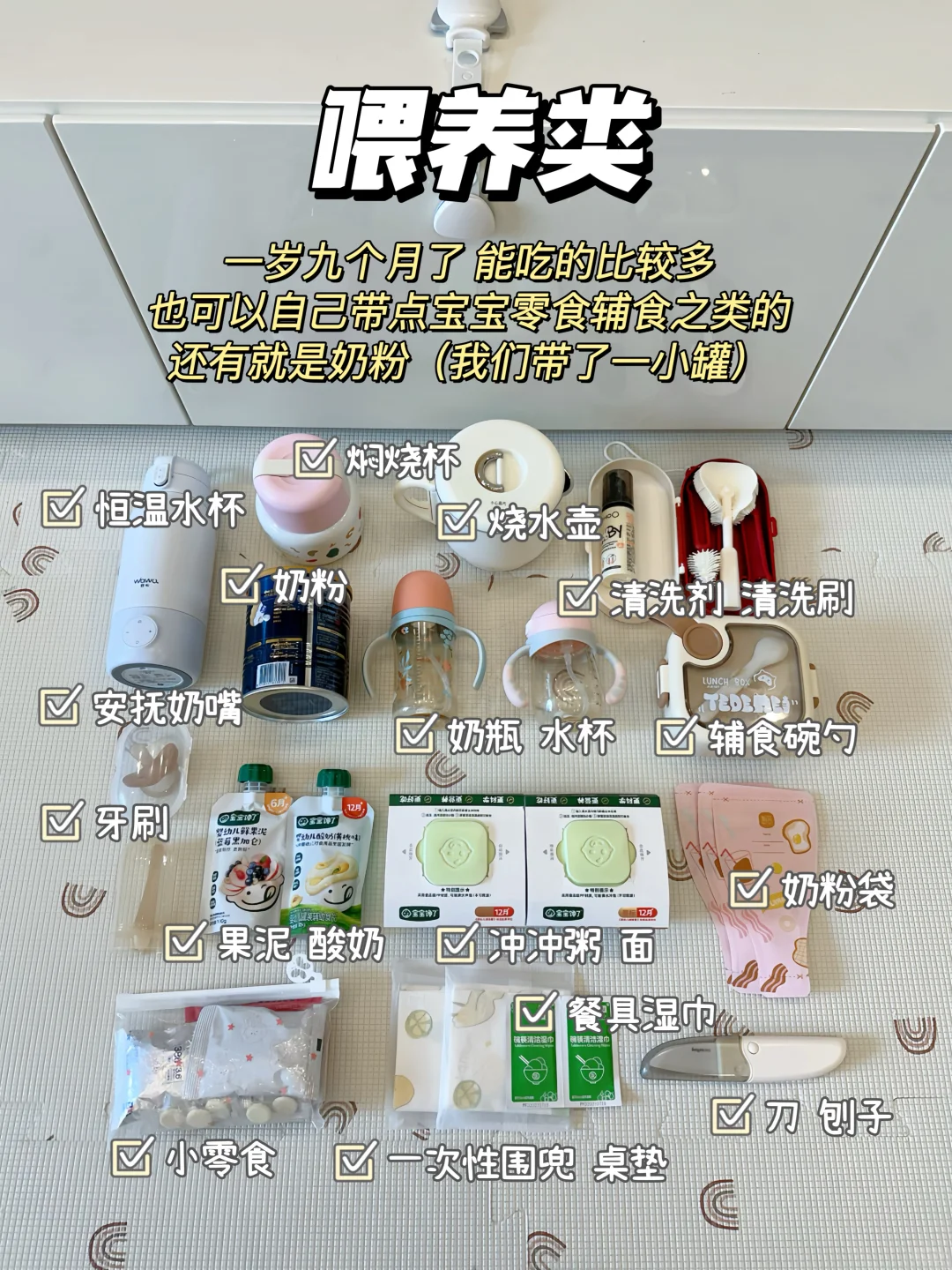 🔘奶瓶:一日三顿奶,带1个足够,及时清洗