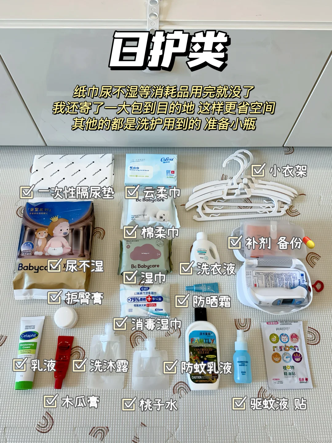 🔘防晒霜/洗沐露/乳液/护臀膏/桃子水:根据娃洗护习惯携带