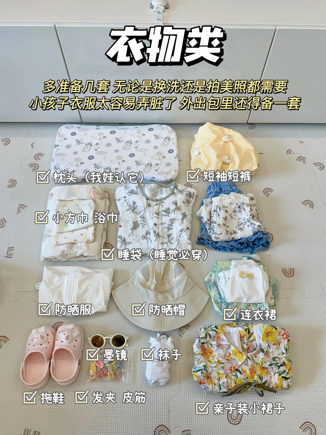 🔘衣物6套:太容易脏了湿了要多备几套,我们还准备了亲子装拍照