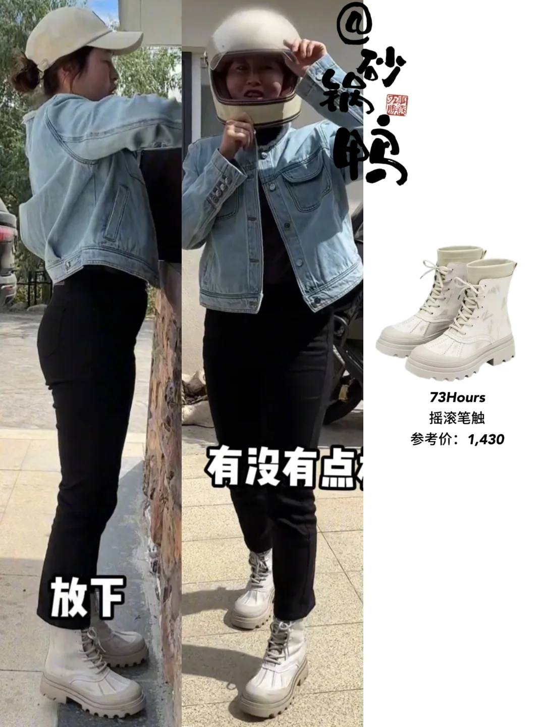 jiong妍姐今天又更新vlog啦 每次都很爱看他们一家的动态,感觉治愈又欢快~ 每次看到马立奥都是活泼又可爱 这次vlog里君妍姐的穿搭也很新疆风格 上身搭配以黑色内搭做基底配色,外披一件牛仔外套,上脚摇滚笔触鞋子,鞋子还做了印花设计,单拎出来还挺有特色,君妍姐这一身搭配特别不错! 图源:马君妍