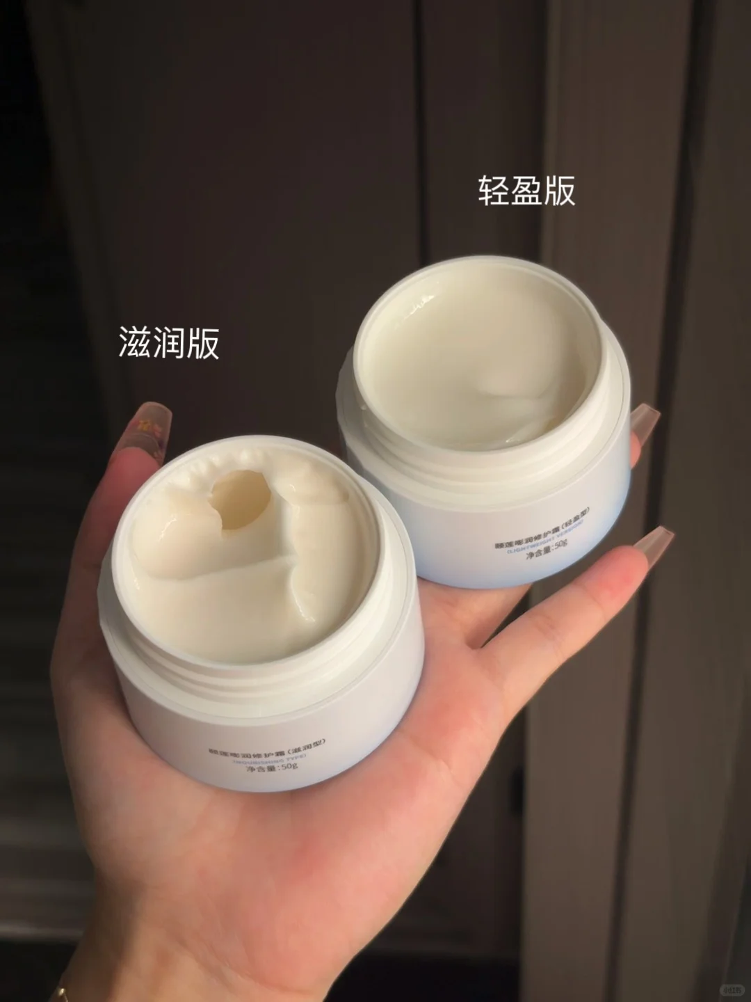 而且它还有两个版本可供选择,干皮滋润版!!滋润版是冰激凌质地,上脸感觉精华都被吃进去了一样,很滋润保湿,轻盈版的是清爽奶霜质地,一抹开就化开了很好吸收,也不会粘腻肤感巨清爽!!